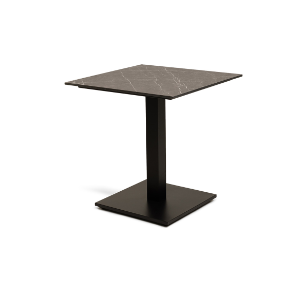 Интерьерный круглый стол «Каффе» со столешницей из HPL в цвете «серый мрамор». Это высококачественный ударопрочный компакт-пластик, обладающий низкой пористостью, что предотвращает впитывание жидкостей, поэтому столы из HPL идеально подходит для обеденных зон. Толщина столешницы – 12 мм.