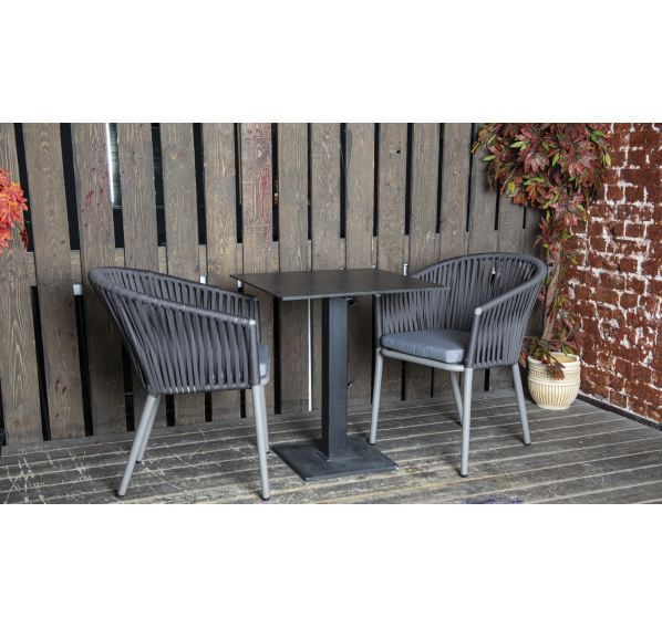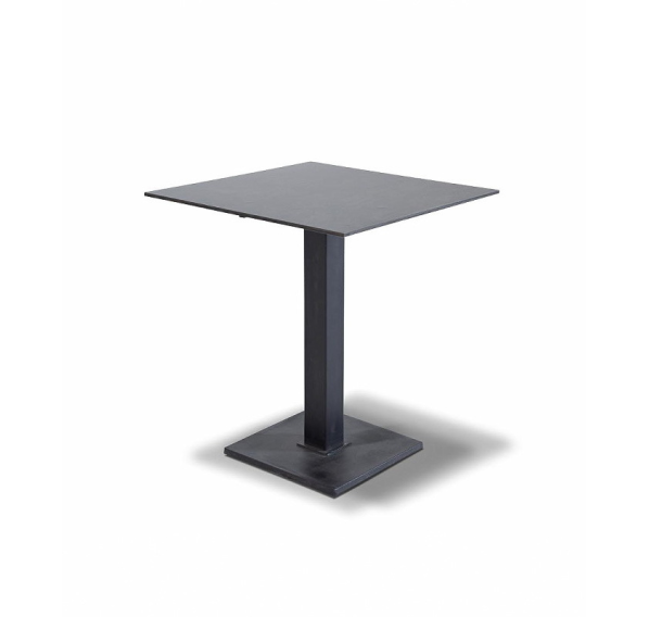 Подстолье изготовлено из чугуна черного цвета, с рамкой для крепления столешницы и широким основанием 400×400 мм. Столешница - из высококачественного монолитного компакт-пластик HPL, толщиной 12 мм, цвет «серый гранит».