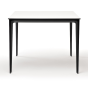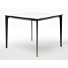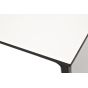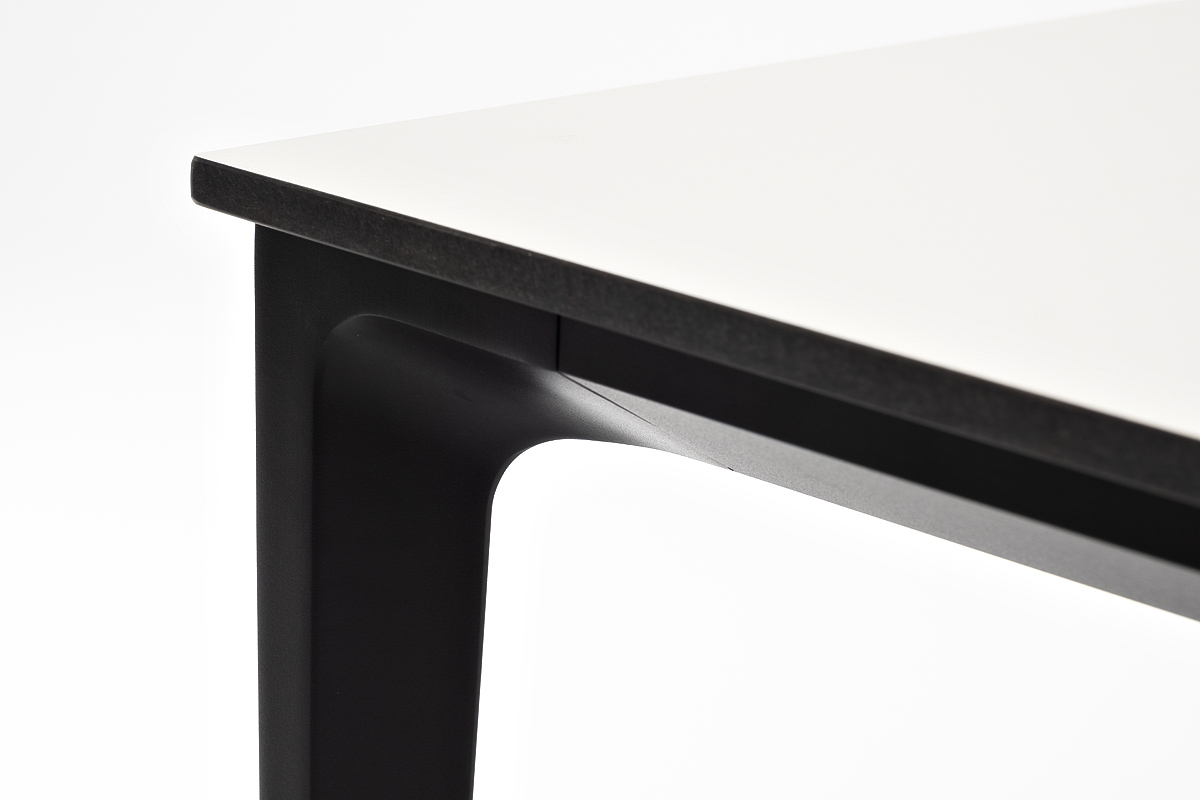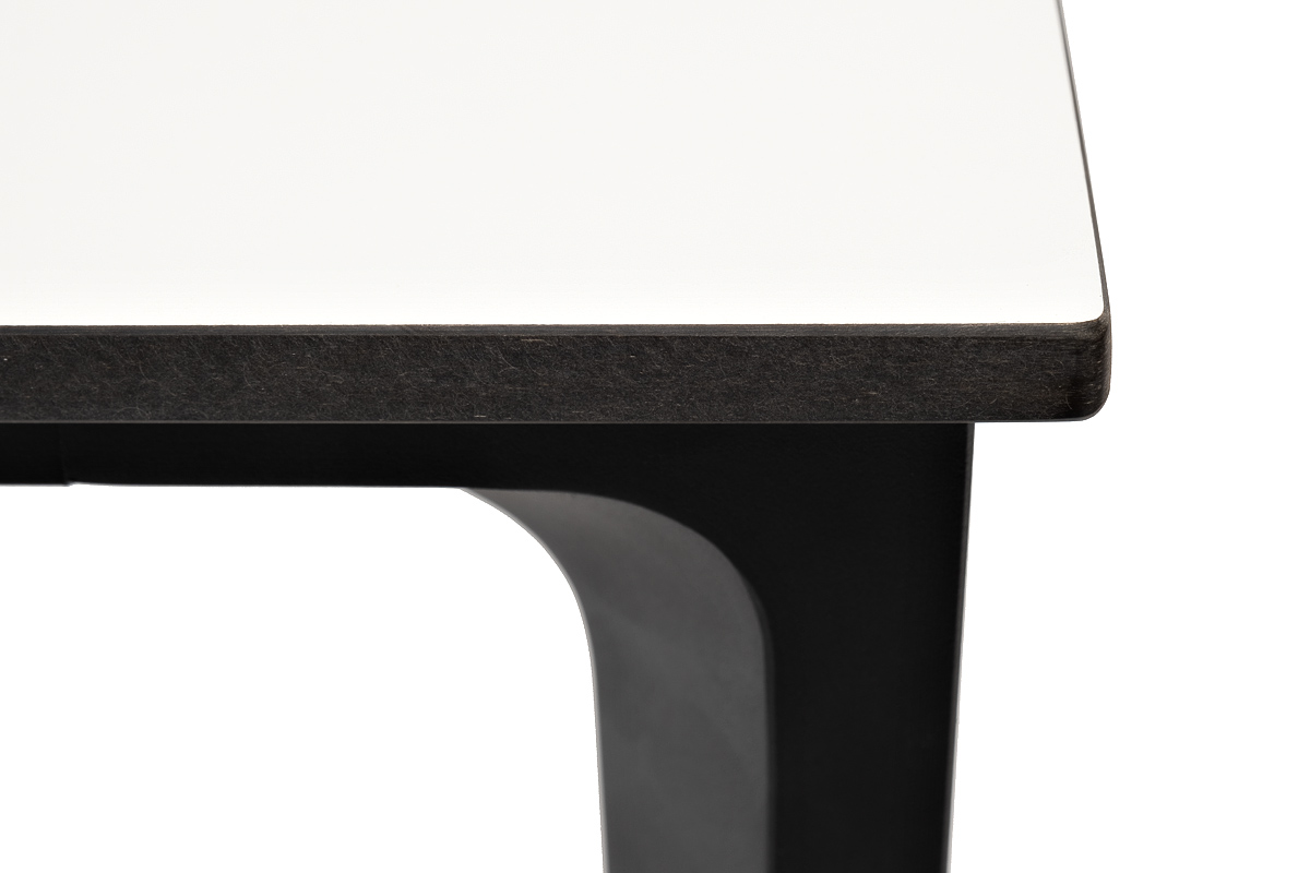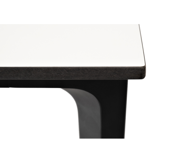 Столешница выполнена из современного высококачественного монолитного компакт-пластик HPL, толщиной 12 мм в молочном цветом. Материал устойчив к высоким температурам, попаданию влаги и может использоваться при любых погодных условиях. Подстолье изготовлено из крашеного алюминия черного цвета.