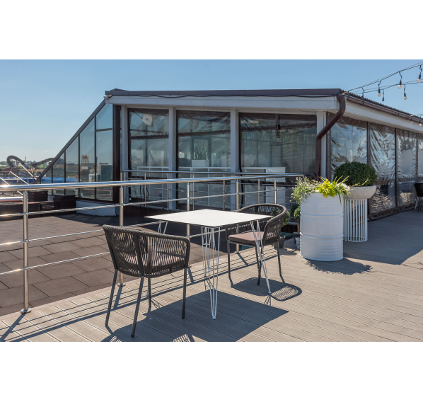 Дизайнерский стол можно использовать в помещении и на улице, устойчив к высоким температурам, влаге, агрессивным моющим средствам.