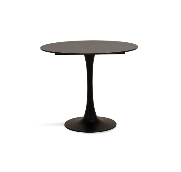 Обеденный стол «Тюльпан» с изящной плетеной ножкой из прочного металла, окрашенного в черный цвет.