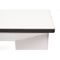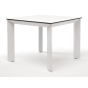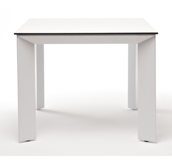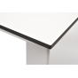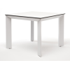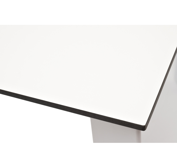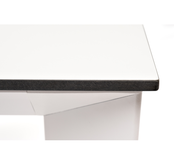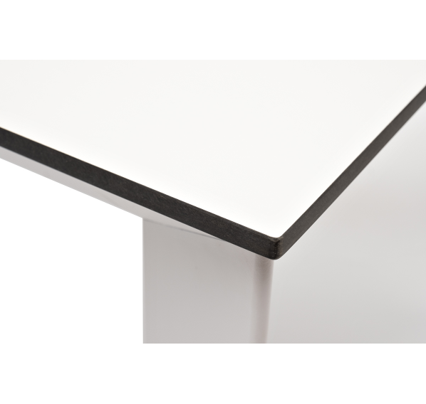 Столешница выполнена из современного высококачественного монолитного компакт-пластик HPL, толщиной 12 мм в цвете молочный. Материал устойчив к высоким температурам, попаданию влаги и может использоваться как в помещении, так и на открытом пространстве. Подстолье изготовлено из крашеного алюминия белого цвета.