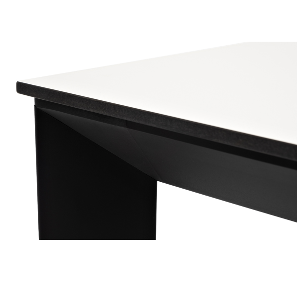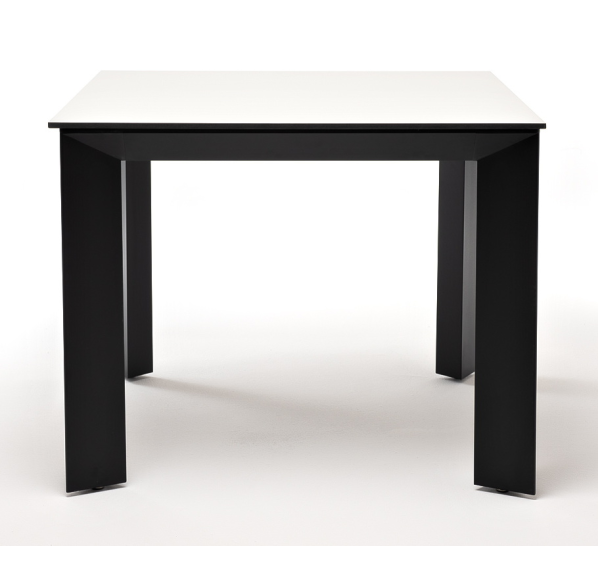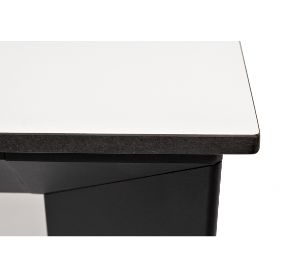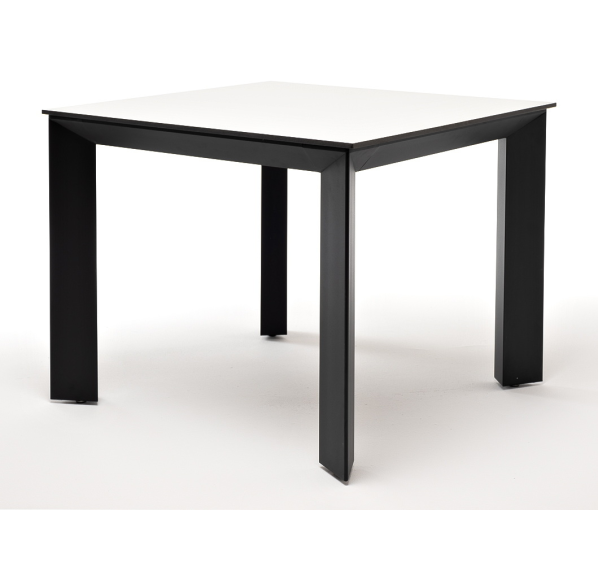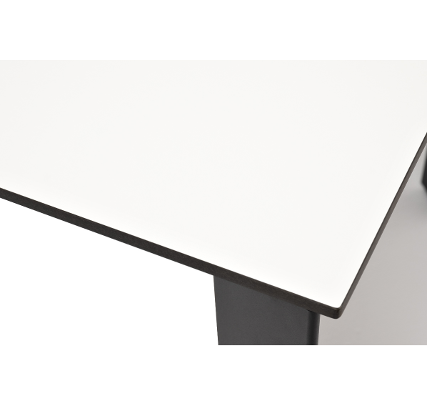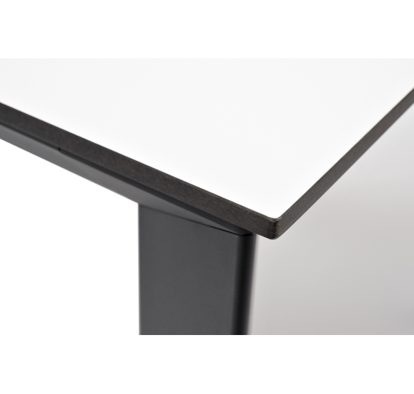 Столешница выполнена из современного высококачественного монолитного компакт-пластик HPL, толщиной 12 мм в цвете молочный. Материал устойчив к высоким температурам, попаданию влаги и может использоваться как в помещении, так и на открытом пространстве. Подстолье изготовлено из крашеного алюминия черного цвета.