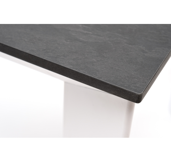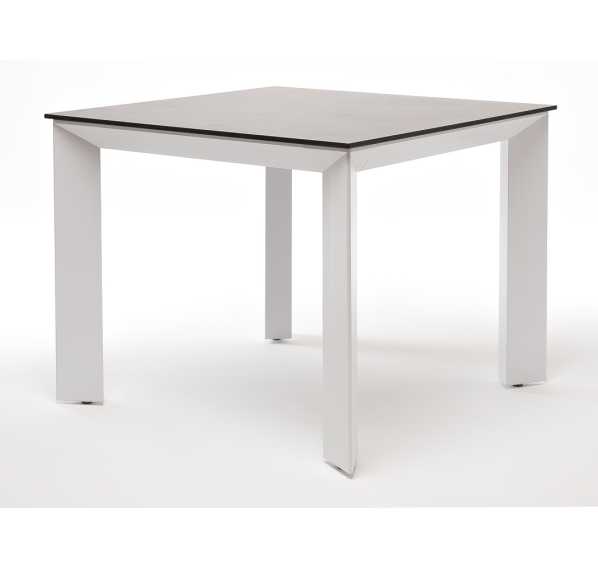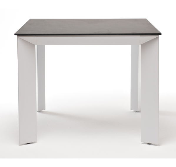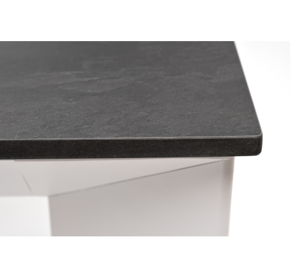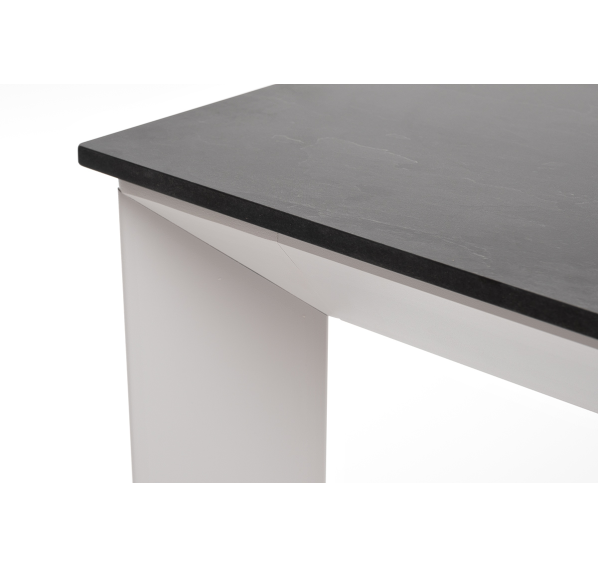 Столешница выполнена из современного высококачественного монолитного компакт-пластик HPL, толщиной 12 мм в цвете «серый гранит». Материал устойчив к высоким температурам, попаданию влаги и может использоваться как в помещении, так и на открытом пространстве. Подстолье изготовлено из крашеного алюминия белого цвета.