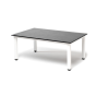 Столик состоит из прочного алюминиевого каркаса, который обеспечивает стабильность стола, и высококачественной столешницы из компакт-пластика HPL, устойчивой к царапинам и другим механическим повреждениям, что позволяет сохранить внешний вид стола на долгое время.