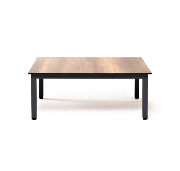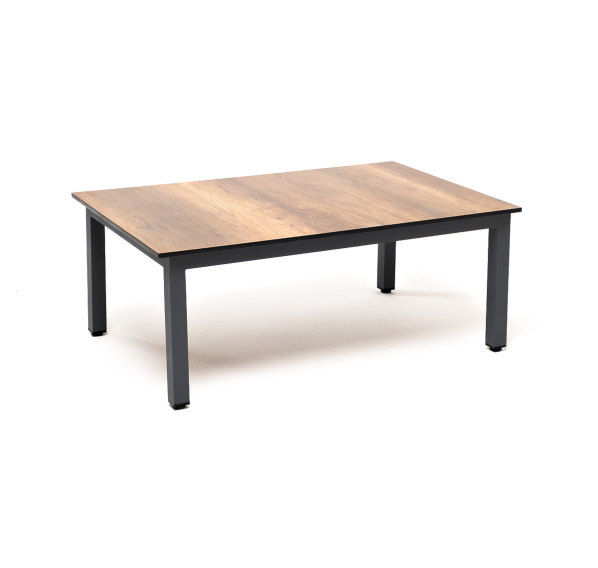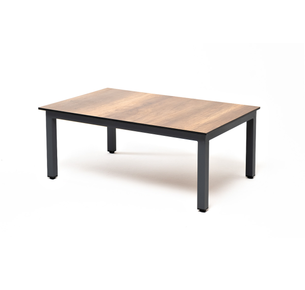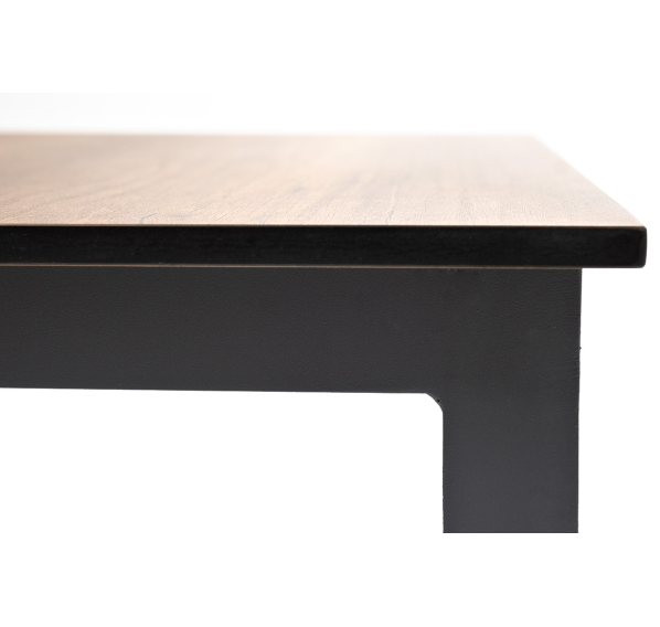 Каркас журнального столика изготовлен из алюминия, окрашенного в цвет темно-серый (RAL 7024). Столешница - из высококачественного монолитного компакт-пластик HPL, цвет «дуб».