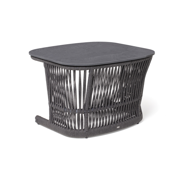 Подстолье - алюминиевая профильная труба, окрашенная износостойкой краской в темно-серый цвет. Нижняя часть задекорирована эластичными синтетическими лентами, состоящими из высокопрочных полиэфирных волокон, аналогичного оттенка.