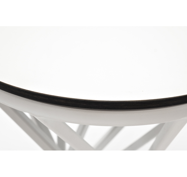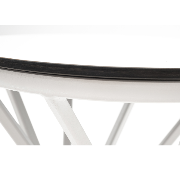 Круглый журнальный столик «Сантьяго», каркас которого изготовлен из стали, окрашенной в белый цвет. Столешница выполнена из высококачественного монолитного компакт-пластика HPL, толщиной 12 мм. Цвет столешницы - молочный.