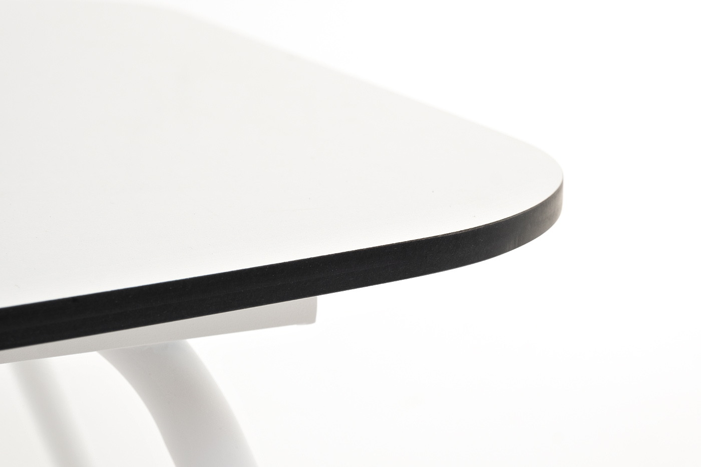 Столешница изготовлена из прочного и устойчивого к механическим воздействиям компакт-пластика HPL в молочном цвете. Благодаря этому сочетанию материалов, интерьерный стол будет прекрасно смотреться в любом помещении и станет удачным дополнением к вашему интерьеру.