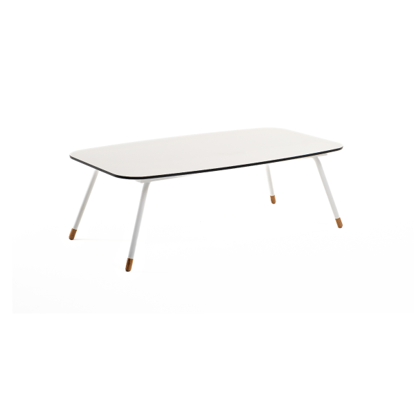 Каркас столика изготовлен из алюминия, окрашенного в белый цвет. Алюминий является легким и прочным материалом, что обеспечивает долговечность и надежность изделия. На ножках столика идут дубовые наконечники (заглушки).