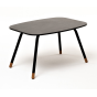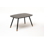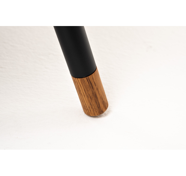 Каркас столика изготовлен из алюминия, окрашенного в черный цвет. Алюминий является легким и прочным материалом, что обеспечивает долговечность и надежность изделия. На ножках столика идут дубовые наконечники (заглушки).