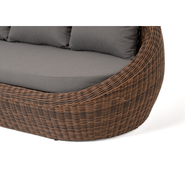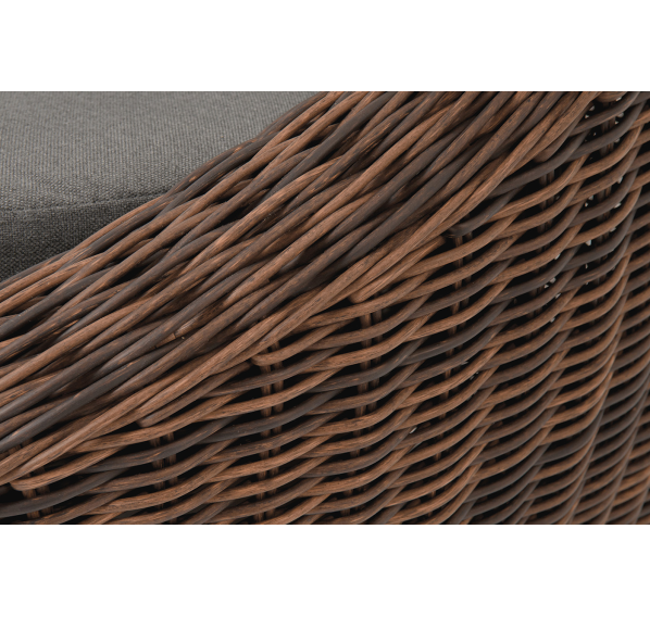 Для оплетки каркаса используется высококачественный искусственный ротанг. Мебель выполнена в коричневом цвете.