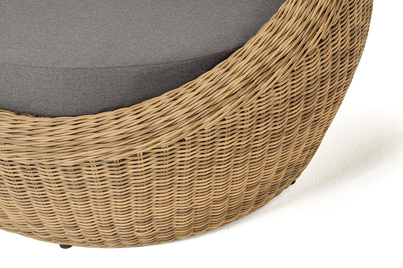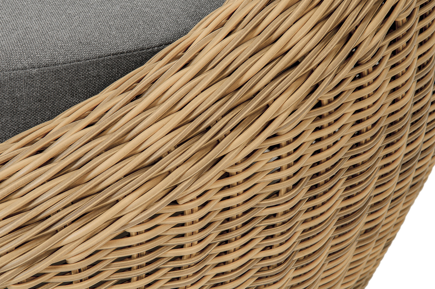 Для оплетки каркаса используется высококачественный искусственный ротанг. Мебель выполнена в соломенном цвете.