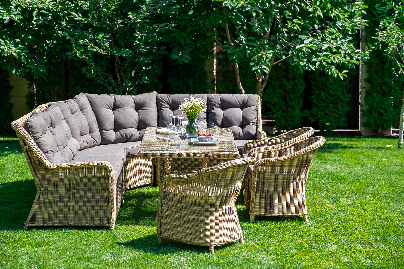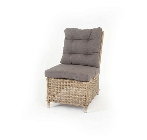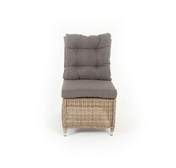 Плетеный центральный модуль дивана «Бергамо», алюминиевый каркас, круглый искусственный ротанг, ручное плетение, цвет соломенный, размер 570×900×990 мм.