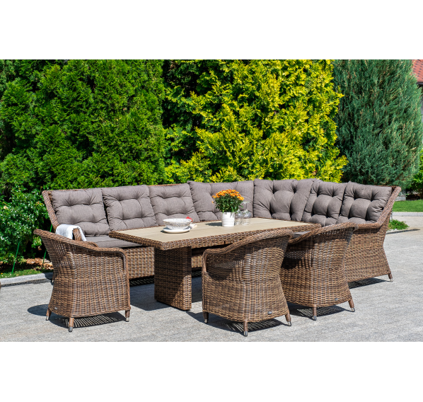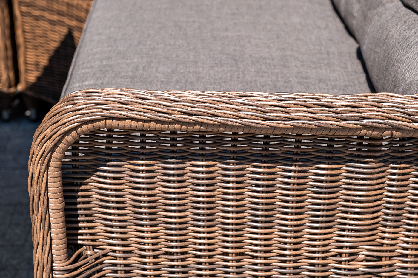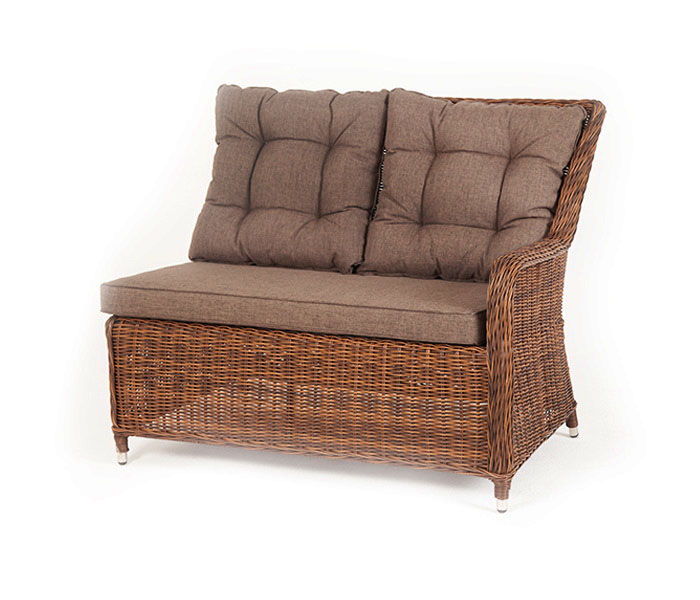 Плетеный левый модуль дивана «Бергамо», алюминиевый каркас, круглый искусственный ротанг, ручное плетение, цвет коричневый, размер 1150×900×990 мм.