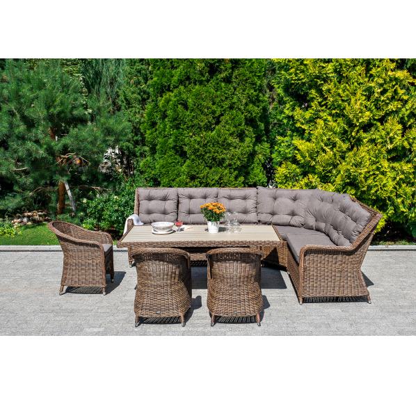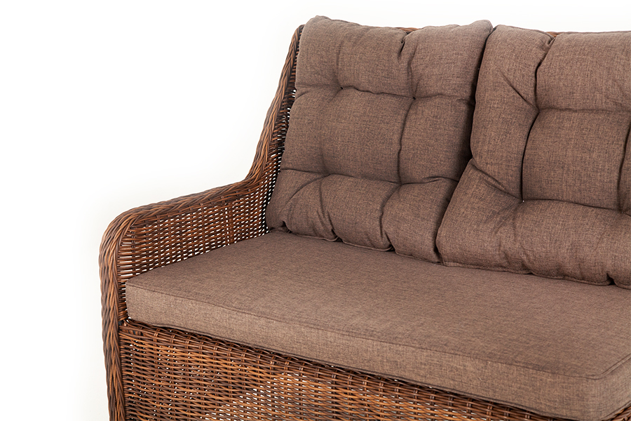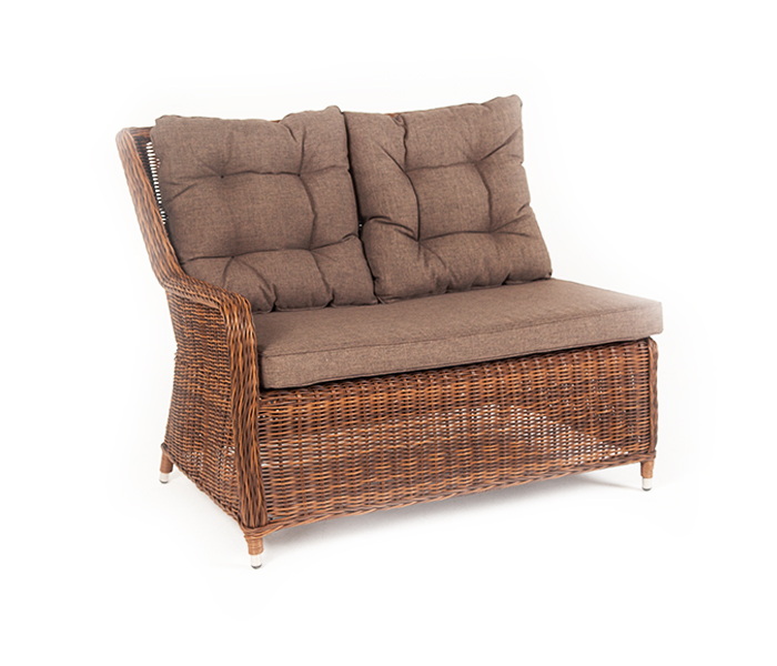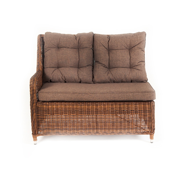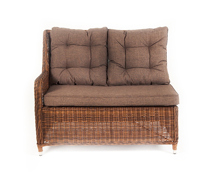 Плетеный правый модуль дивана «Бергамо», алюминиевый каркас, круглый искусственный ротанг, ручное плетение, цвет коричневый 1150×900×990 мм.