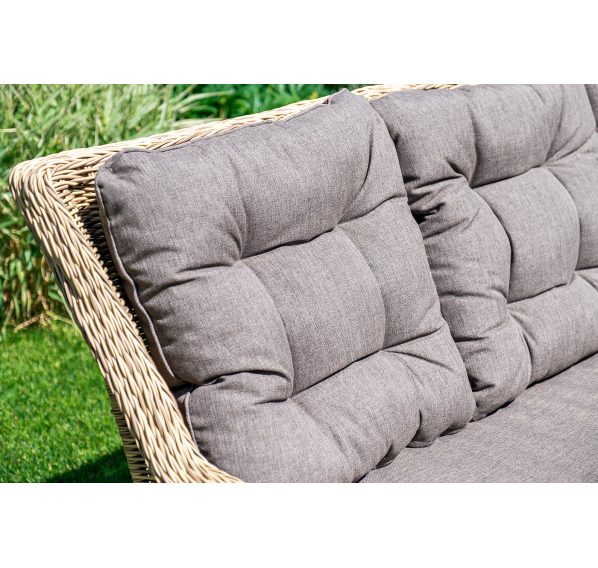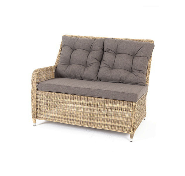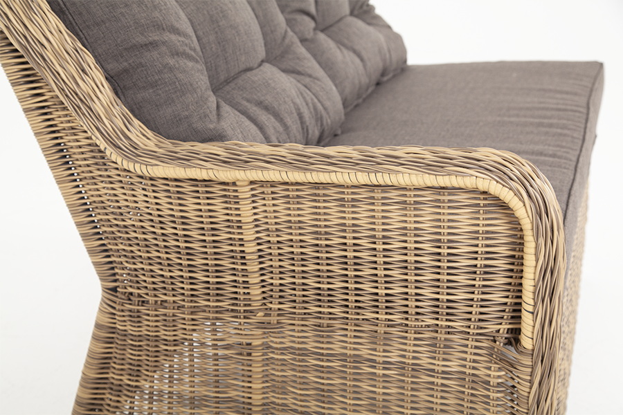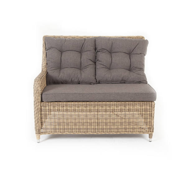 Плетеный правый модуль дивана «Бергамо», алюминиевый каркас, круглый искусственный ротанг, ручное плетение, цвет соломенный 1150×900×990 мм.