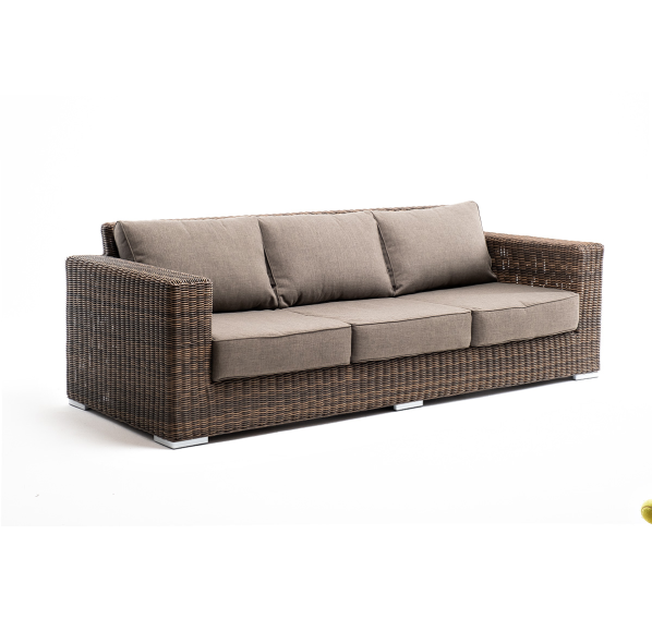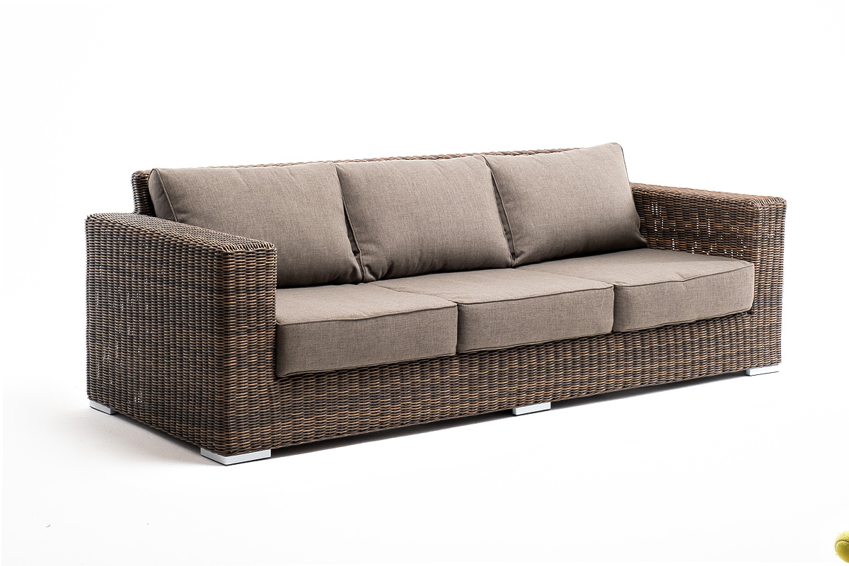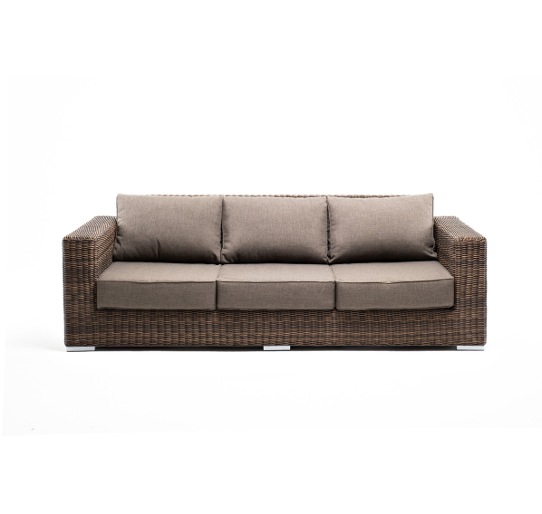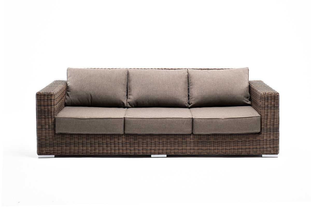 Диван «Боно» подходит для размещения сразу трех персон. Его основа из прочного алюминиевого каркаса. Размер модели – 2300×900×775 мм, толщина подушки: 150 мм, вес: 45 кг.