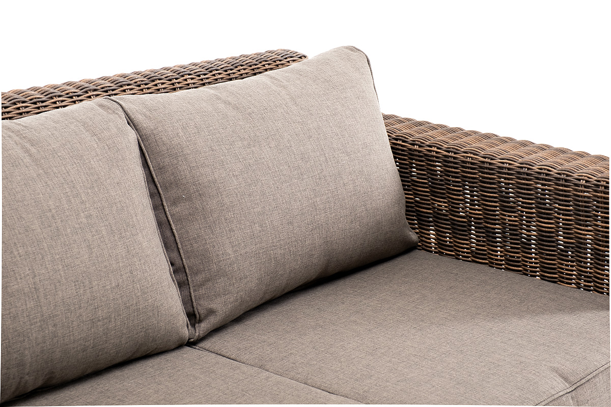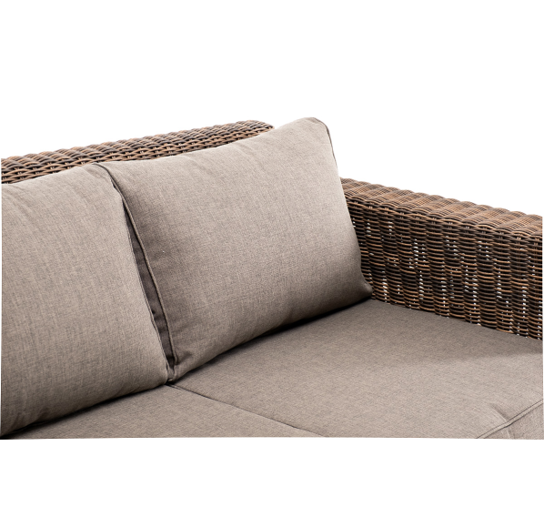 В комплекте с трехместным диваном идут мягкие подушки для комфортного расположения. Чехлы съёмные серого цвета из высококлассного полиэстера с плотностью 300гр/м2. Защитные свойства ткани усиливаются при помощи влагоотталкивающей пропитки.