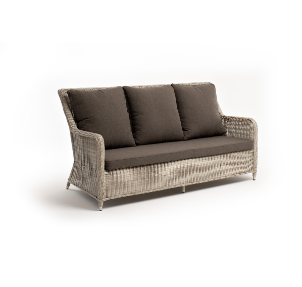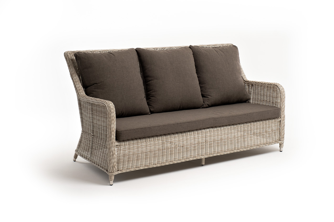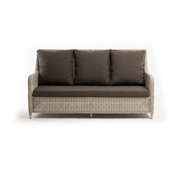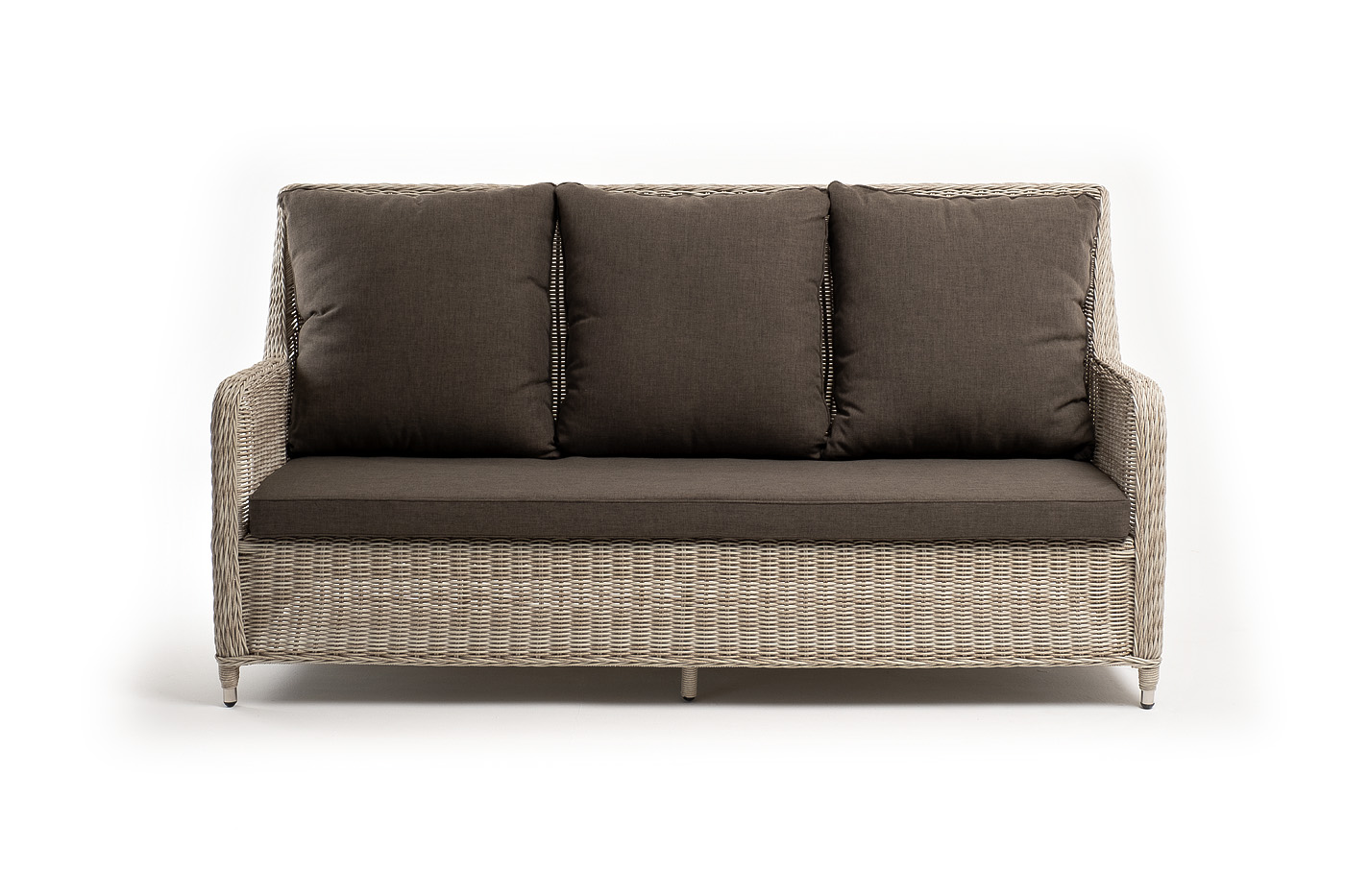 Диван «Гляссе» подходит для размещения сразу трех персон. Его основа из прочного алюминиевого каркаса.