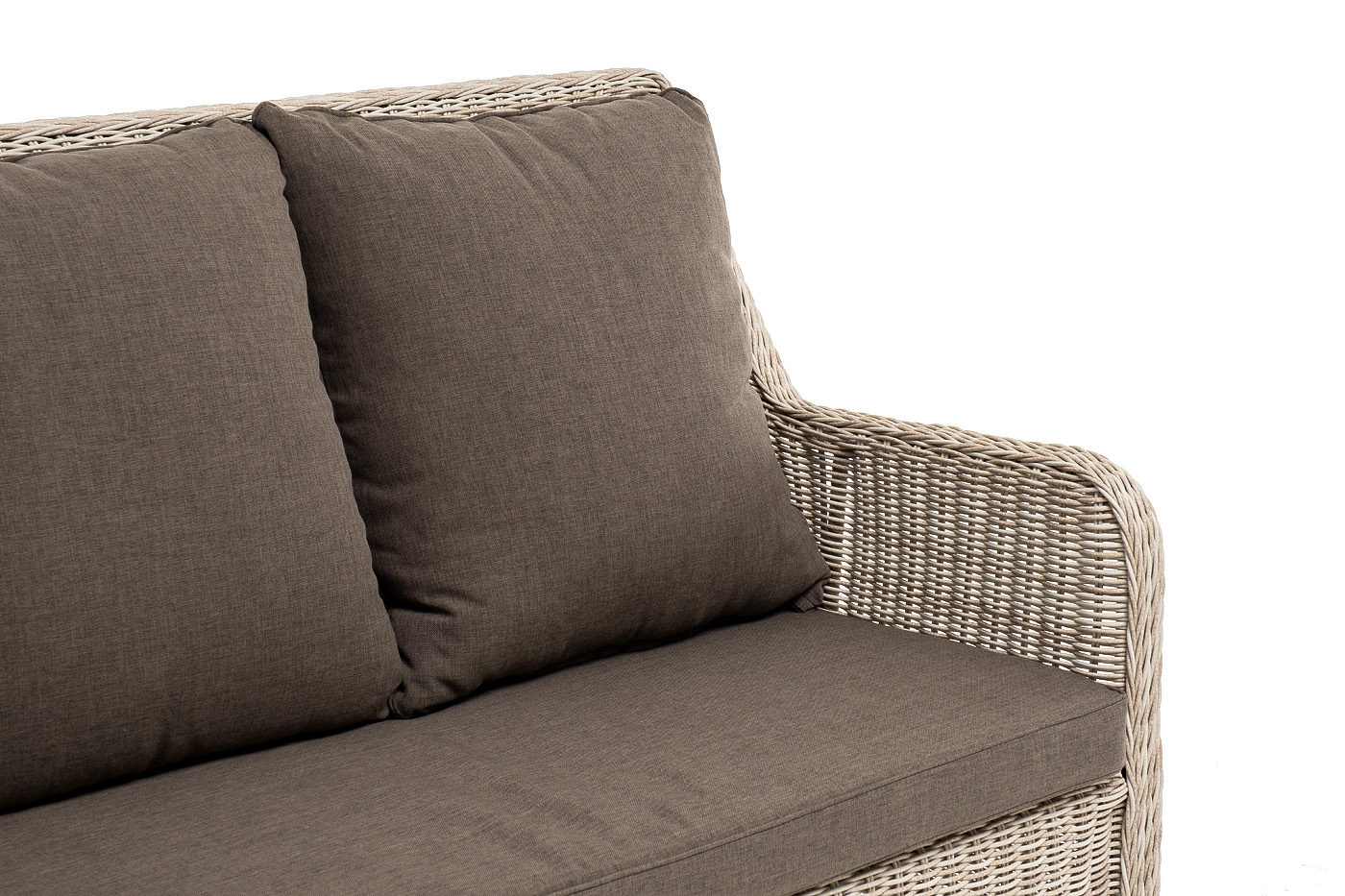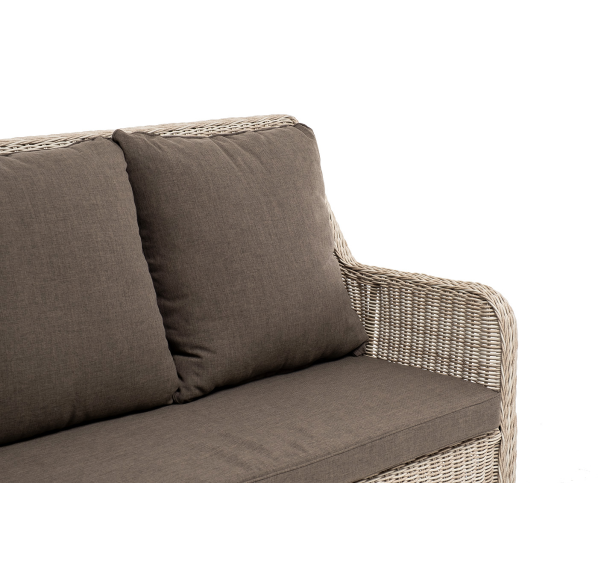 В комплекте с трехместным диваном идут мягкие подушки для комфортного расположения. Чехлы съёмные серого цвета из высококлассного полиэстера с плотностью 300гр/м2. Защитные свойства ткани усиливаются при помощи влагоотталкивающей пропитки.