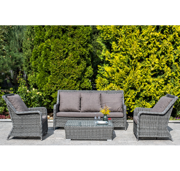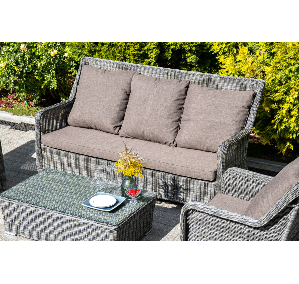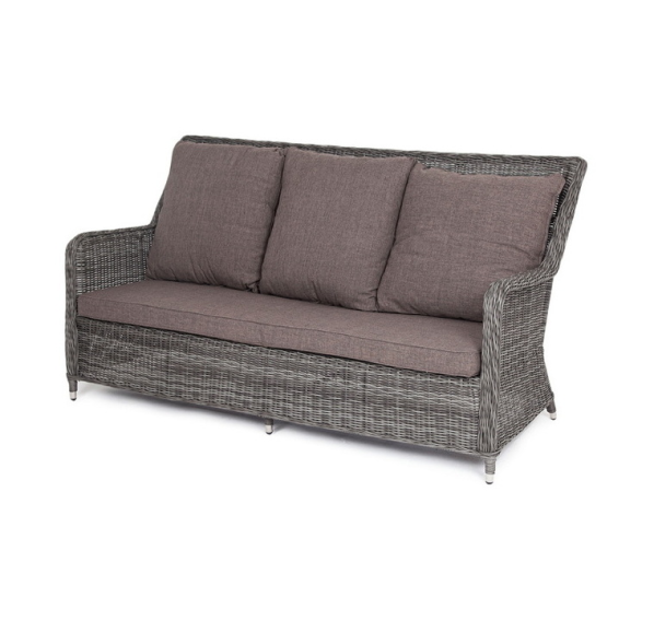 В комплекте с трехместным диваном идут мягкие подушки для комфортного расположения. Чехлы съёмные серого цвета из высококлассного полиэстера с плотностью 300гр/м2. Защитные свойства ткани усиливаются при помощи влагоотталкивающей пропитки.