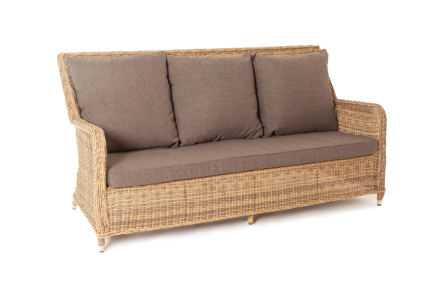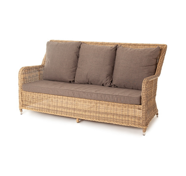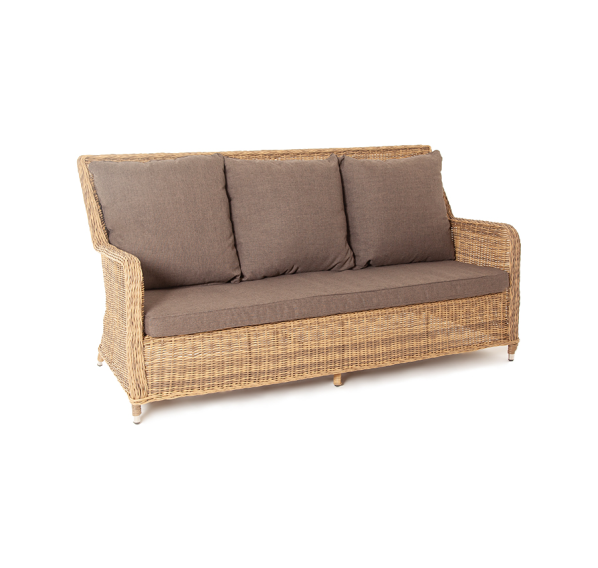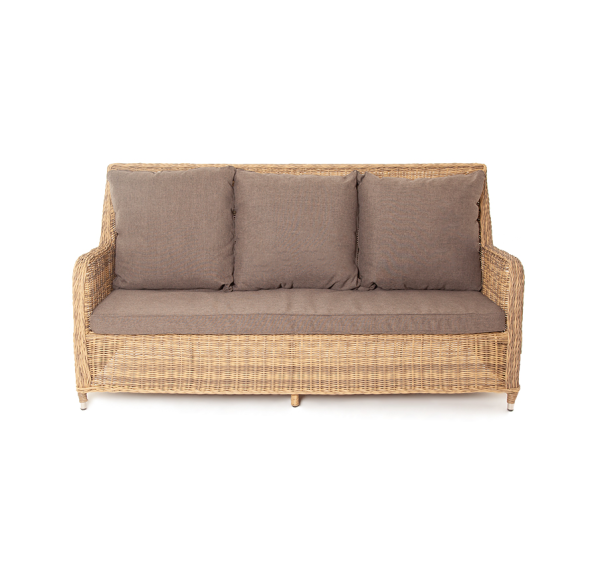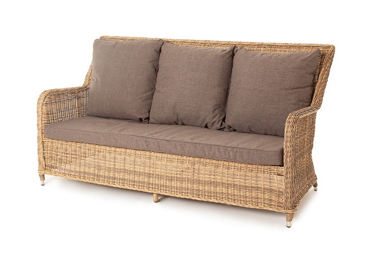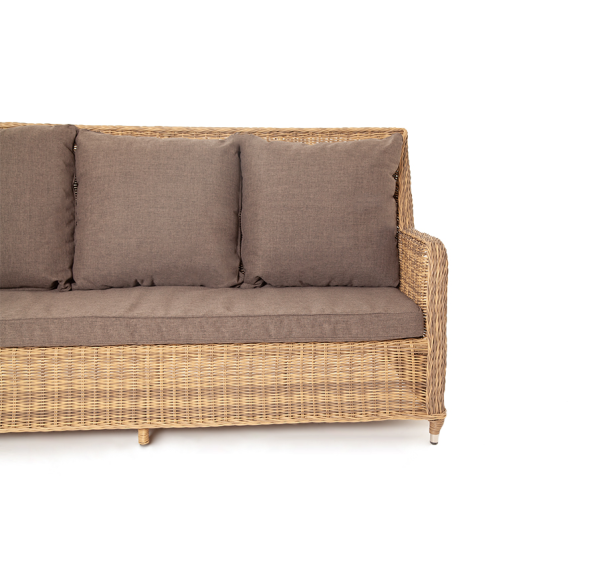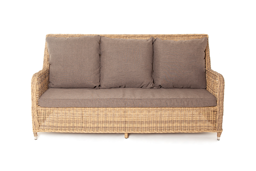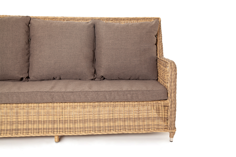 В комплекте с трехместным диваном идут мягкие подушки для комфортного расположения. Чехлы съёмные серого цвета из высококлассного полиэстера с плотностью 300гр/м2. Защитные свойства ткани усиливаются при помощи влагоотталкивающей пропитки.