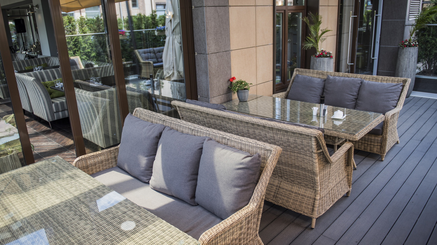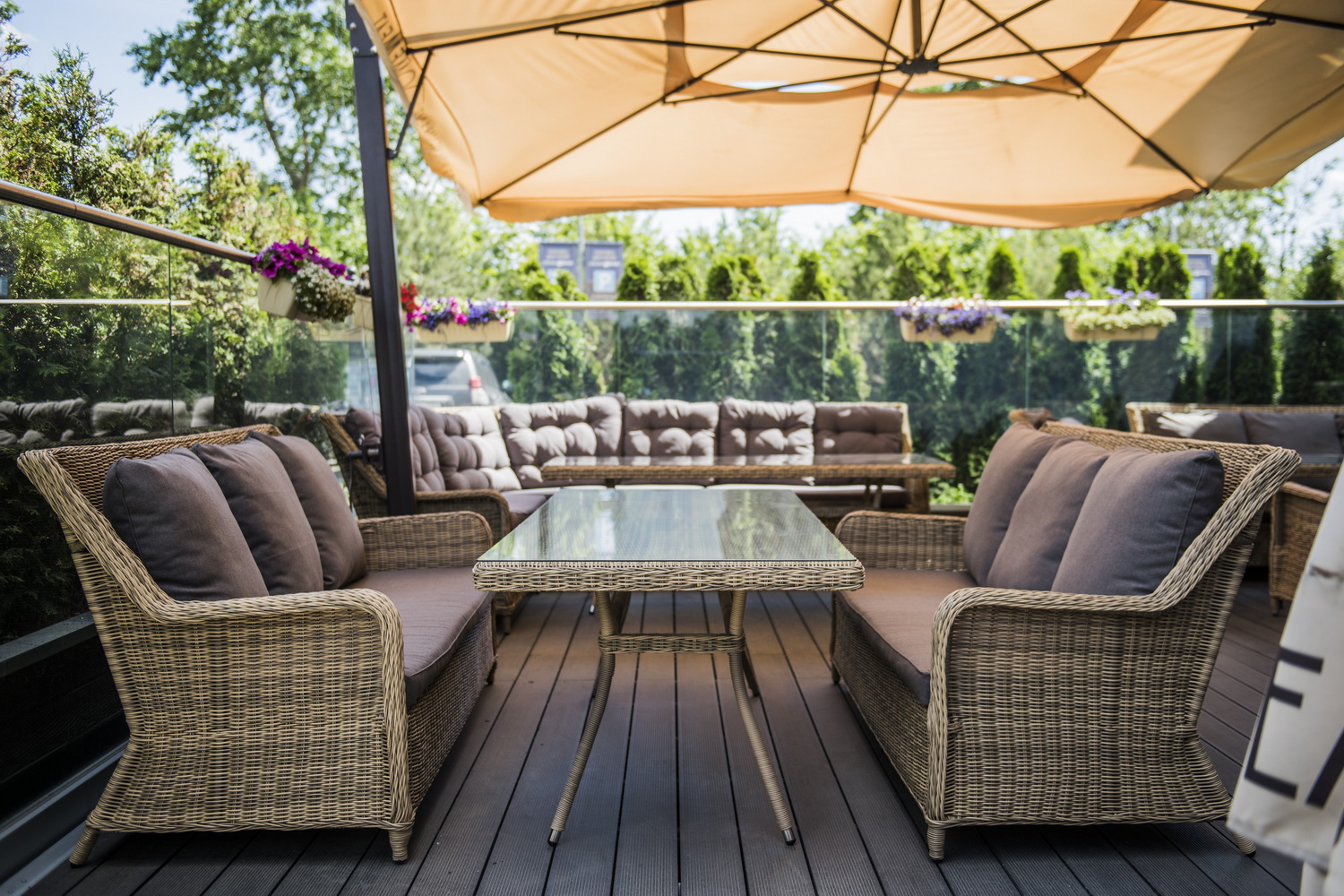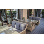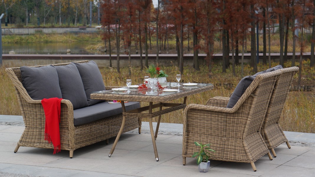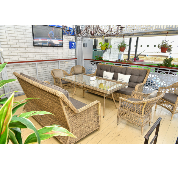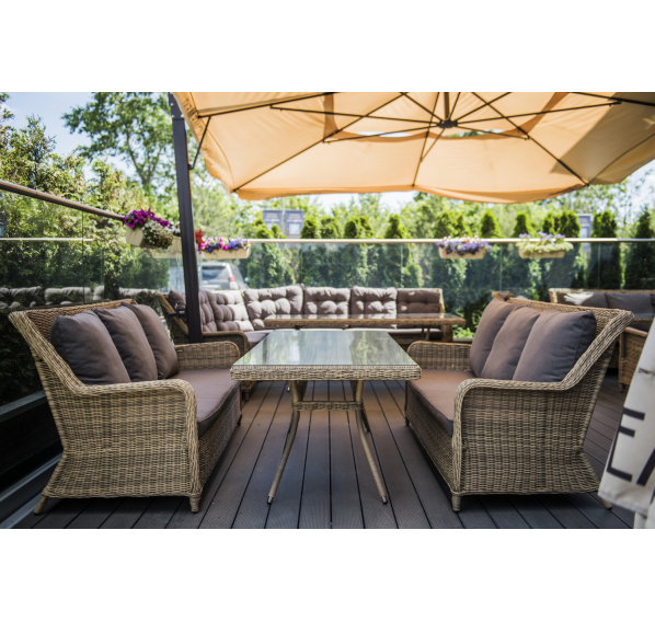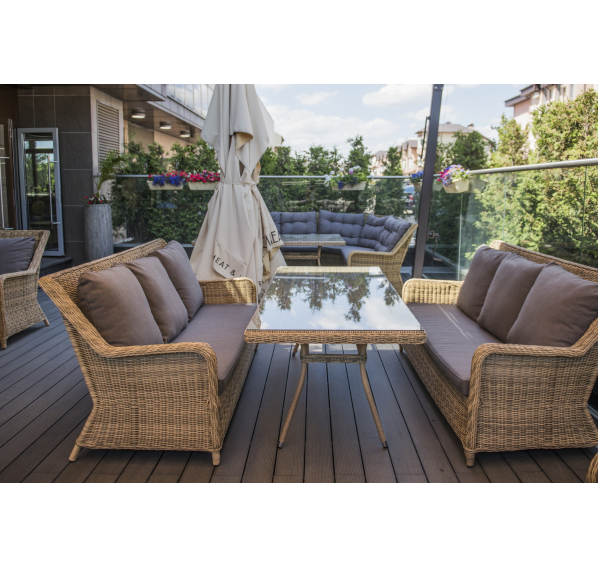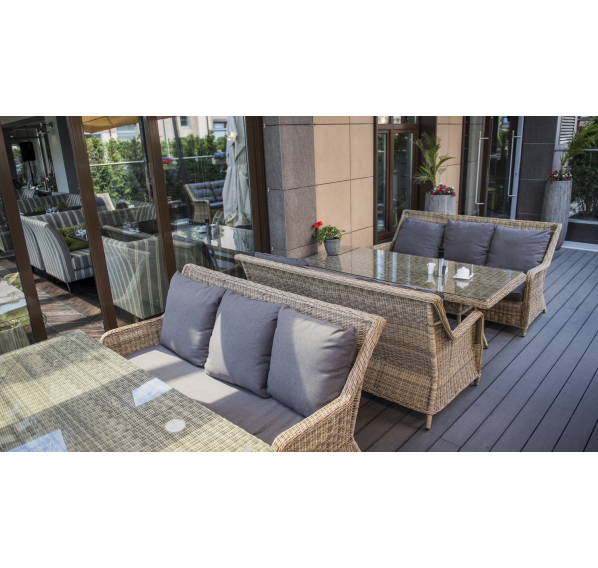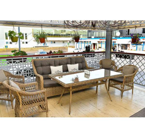 Диван «Гляссе» подходит для размещения сразу трех персон. Его основа из прочного алюминиевого каркаса. Размер модели – 1900×880×990 мм.