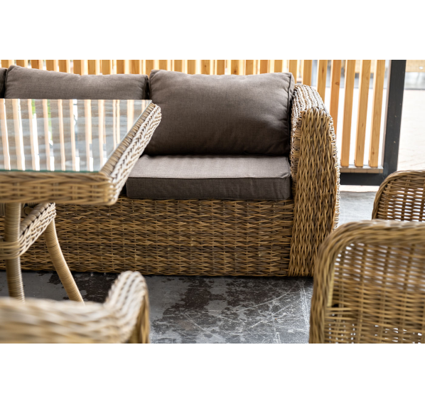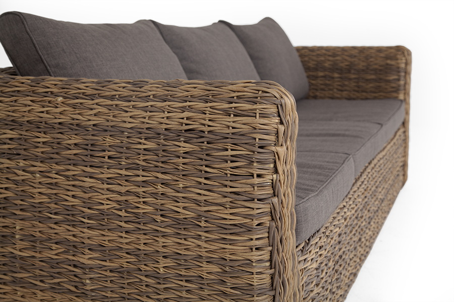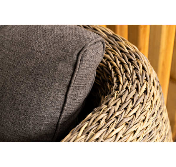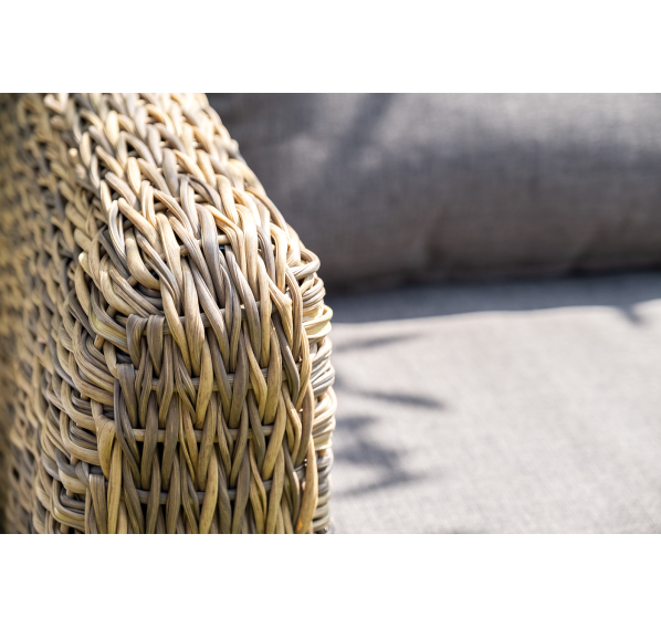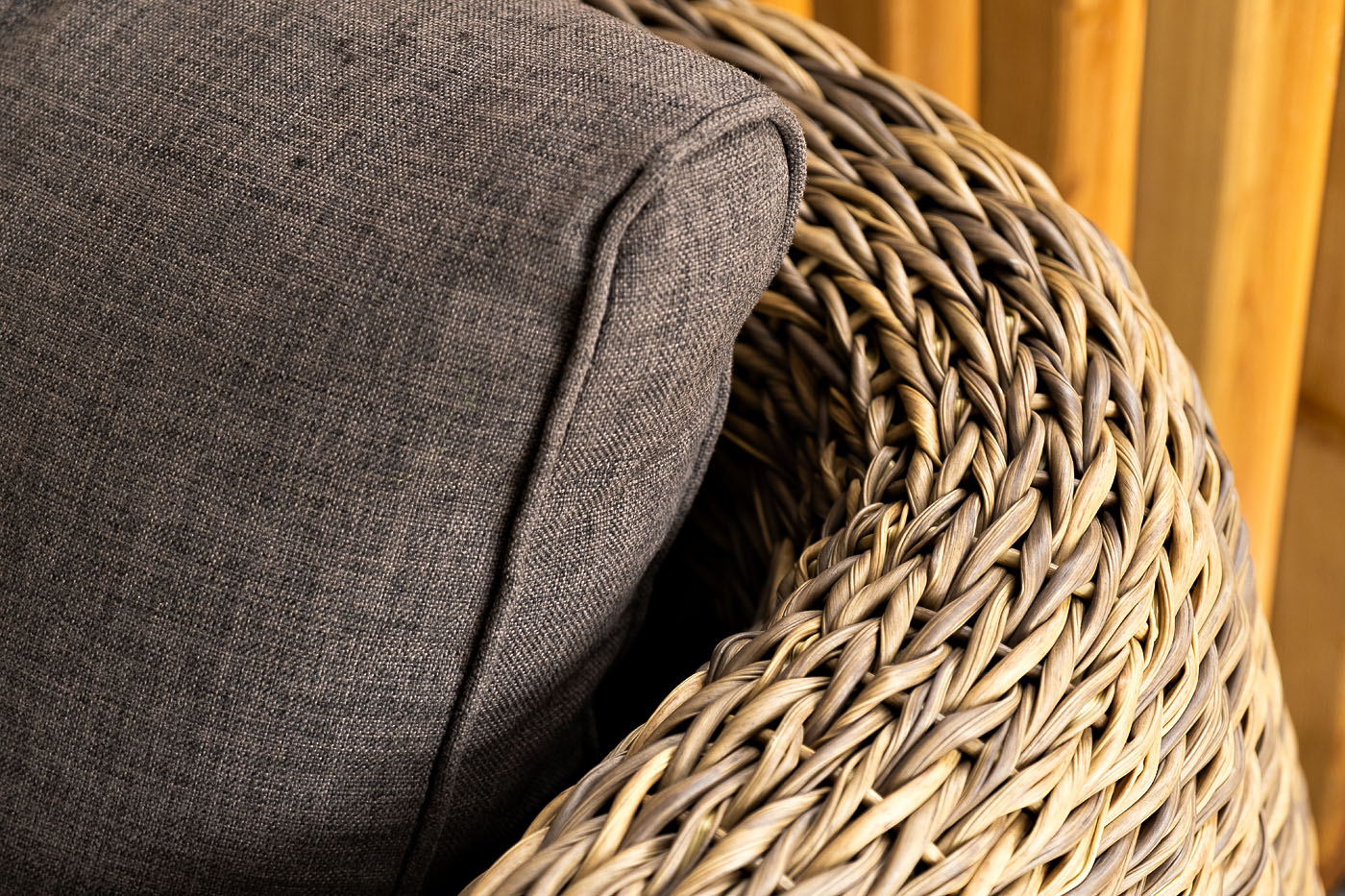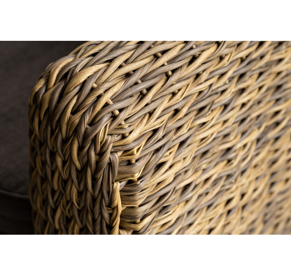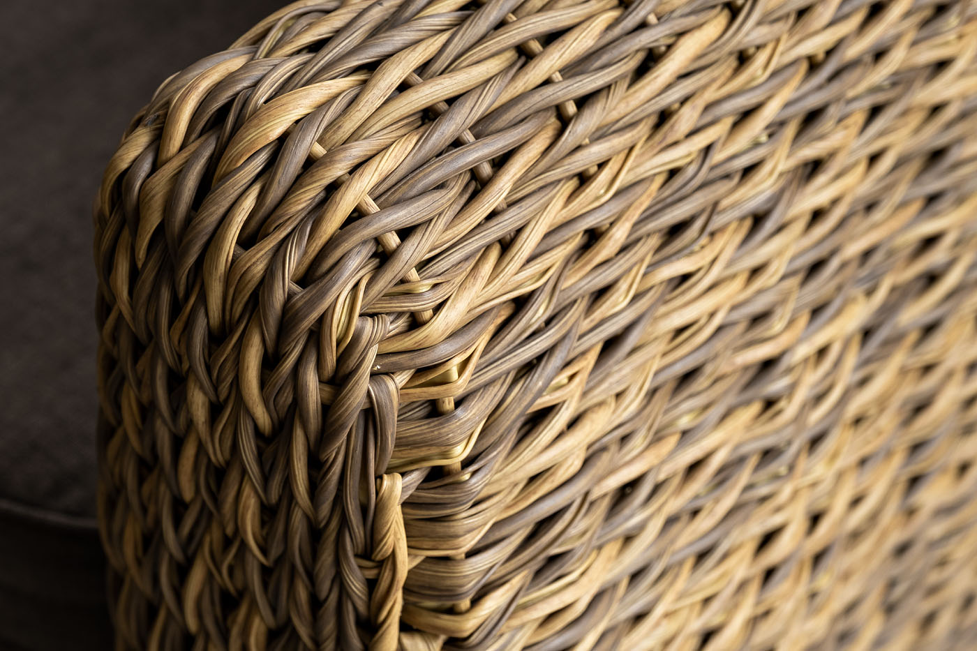 Ручное круглое плетение является основным декоративным элементом мебели. Оно выполнено из искусственного ротанга вида «гиацинт» в соломенном цвете.