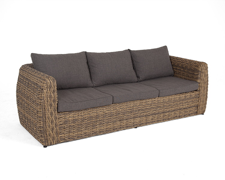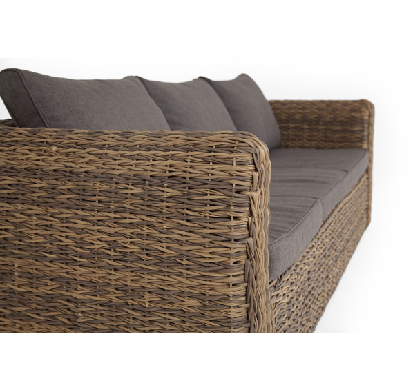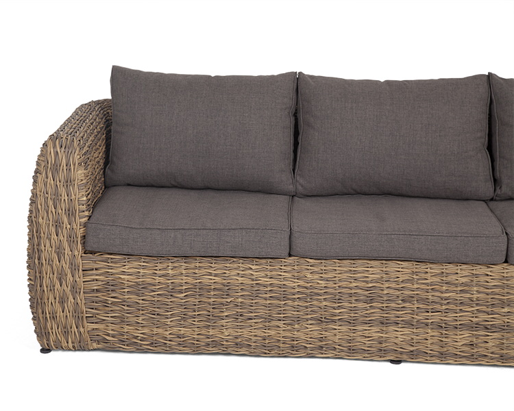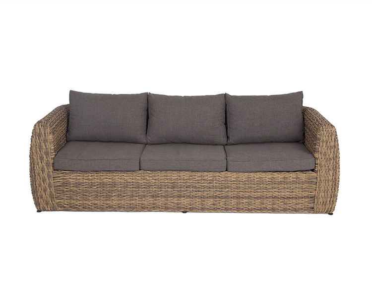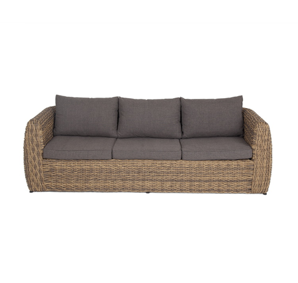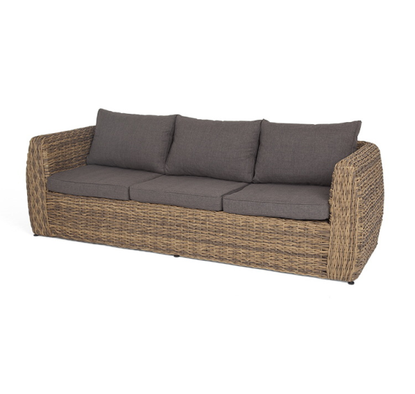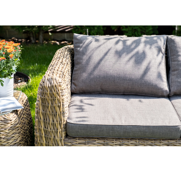 В комплекте с трехместным диваном идут мягкие подушки для комфортного расположения. Чехлы съёмные серого цвета из высококлассного полиэстера с плотностью 300гр/м2. Защитные свойства ткани усиливаются при помощи влагоотталкивающей пропитки.