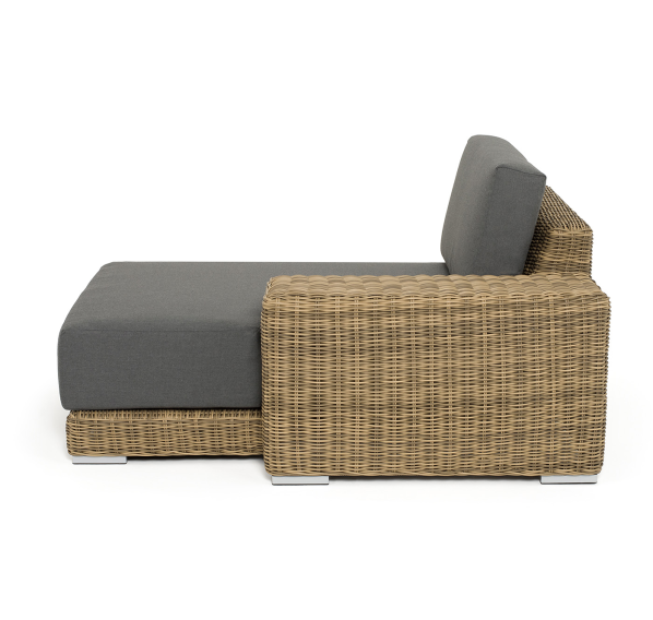 «Капри» плетеная кушетка из искусственного ротанга соломенного оттенка прекрасно дополнит пространство для отдыха на открытом воздухе.