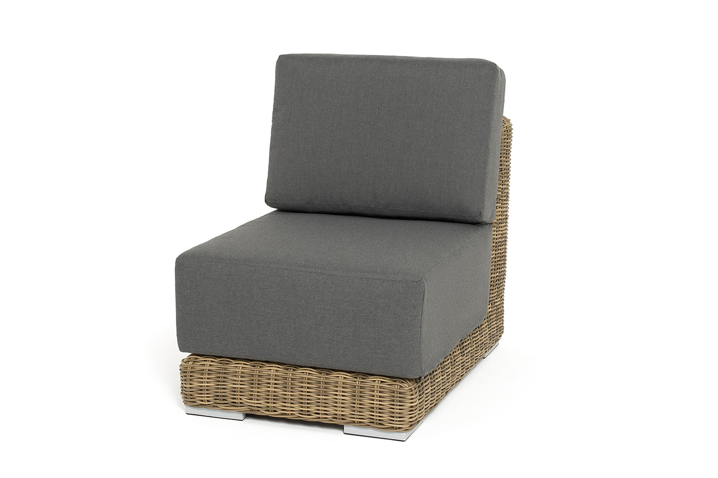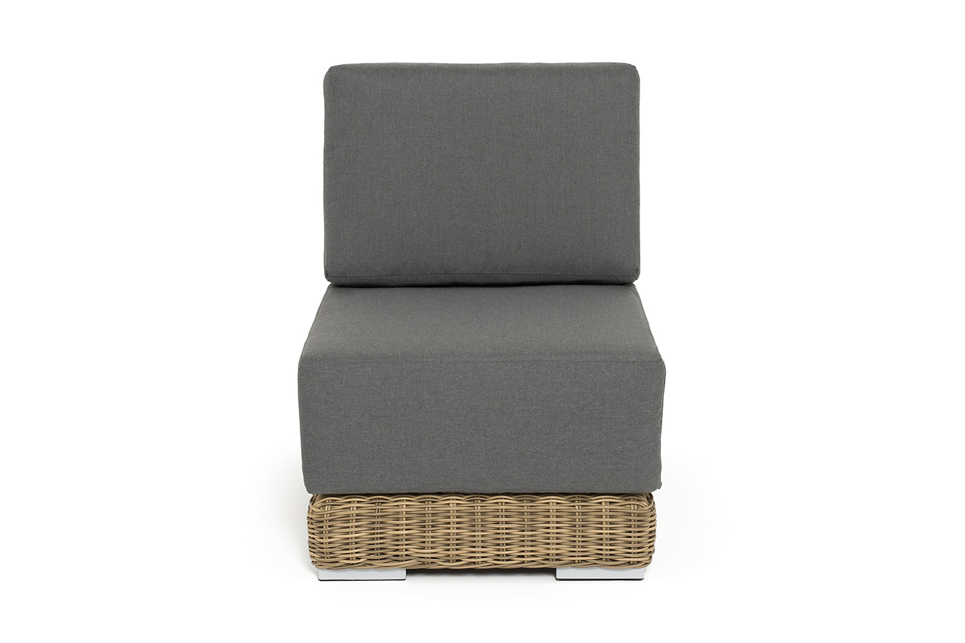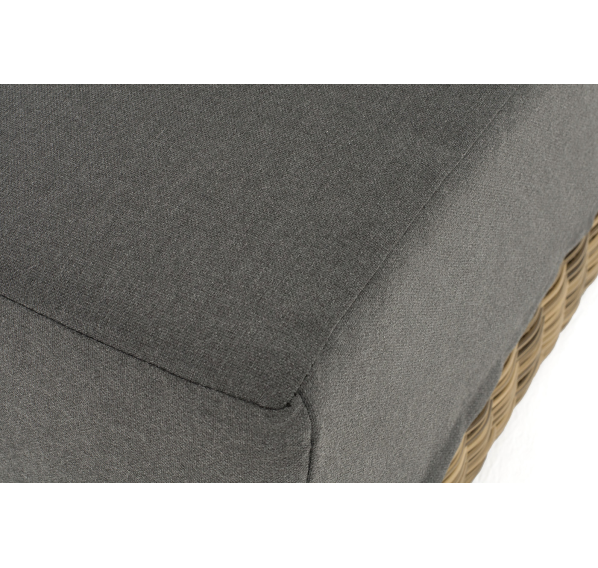 Прямой модуль «Капри», выполненный из круглого искусственного ротанга соломенного оттенка, позволяет использовать не только как самостоятельный элемент, но и быть частью лаунж-зоны, в которую данная модель превосходно интегрируется.