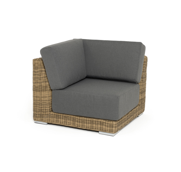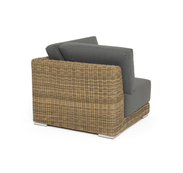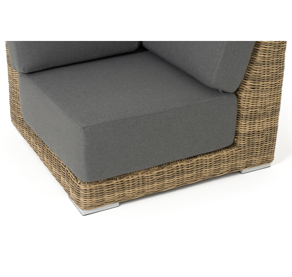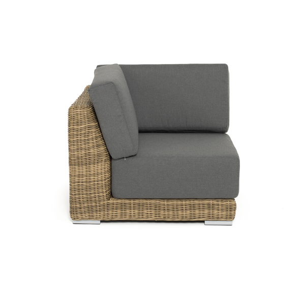 Угловой модуль из круглого искусственного ротанга «Капри» является одним из звеньев для создания лаунж зоны по индивидуальным потребностям.
