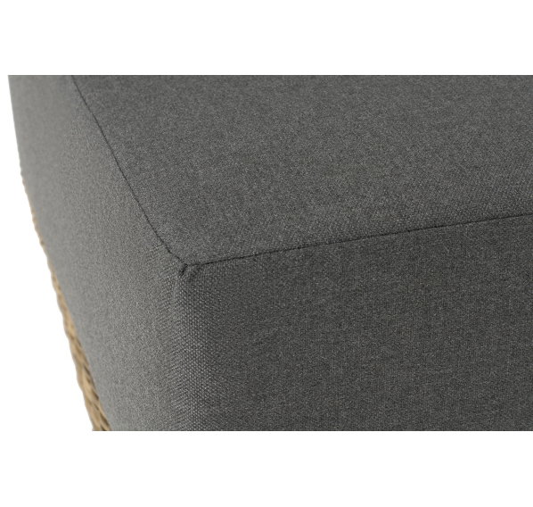 Основа выполнена из алюминиевого каркаса, декорированного вручную оплеткой соломенного цвета. Комплектацией предусмотрены подушки, выпаленные из полиэстера с влагоотталкивающей пропиткой.