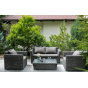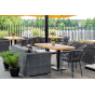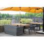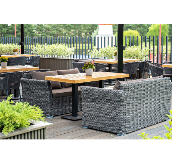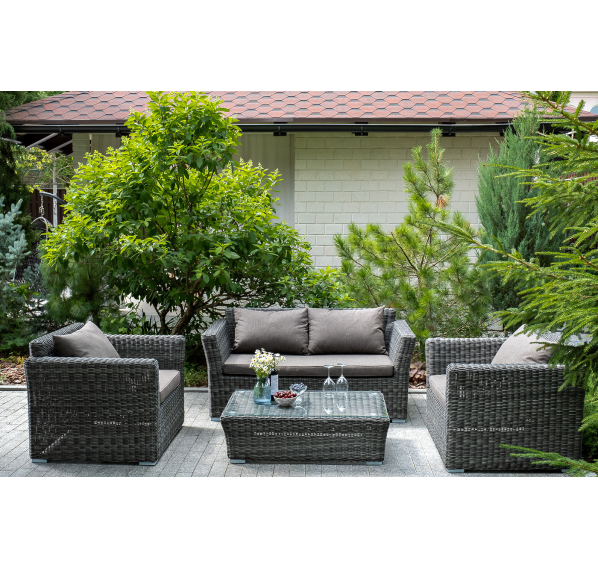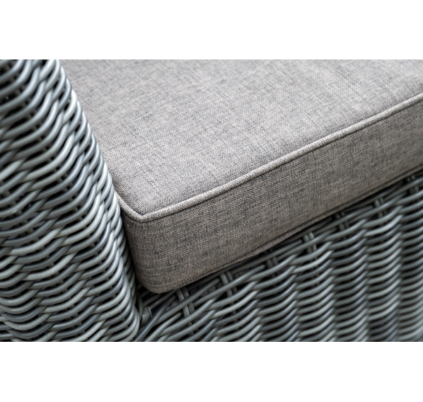 Диван выполнен из круглого искусственного ротанга графитового цвета, оплетенного вручную.