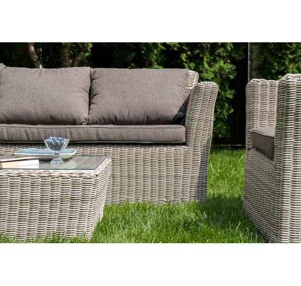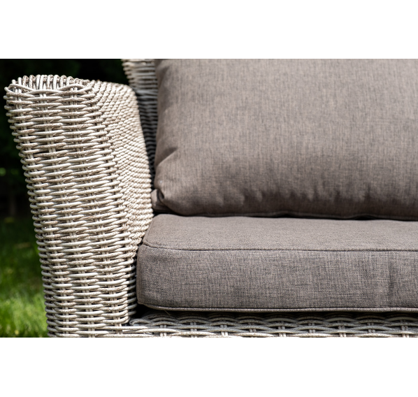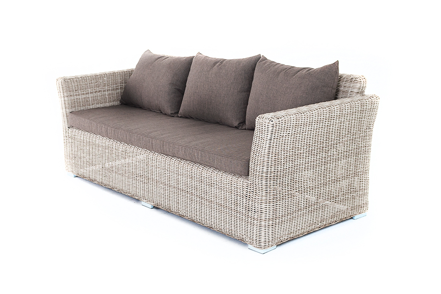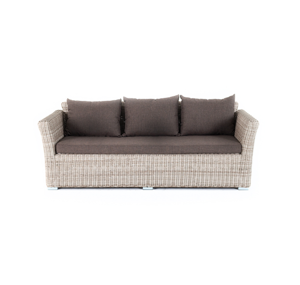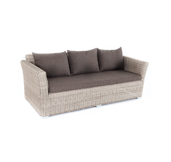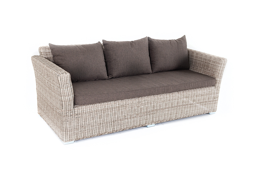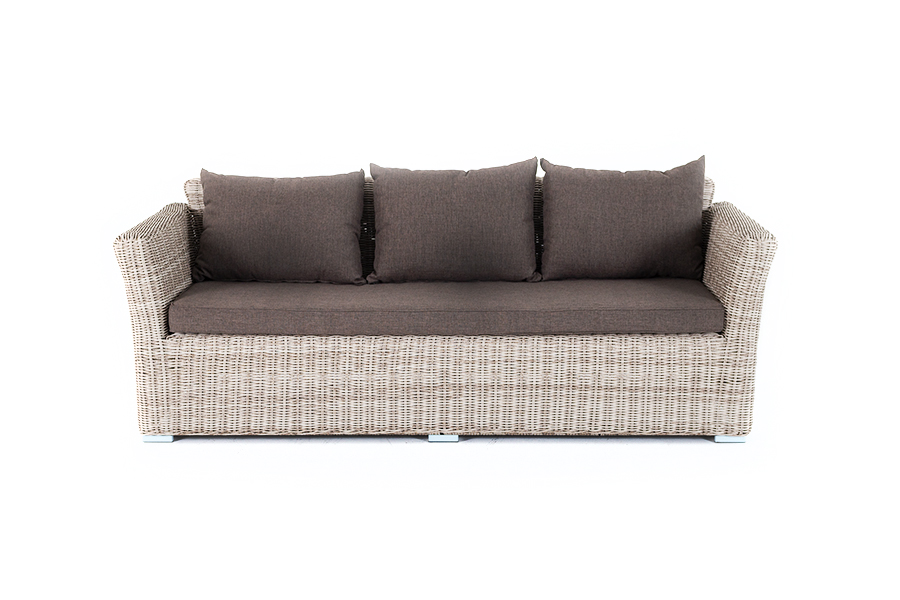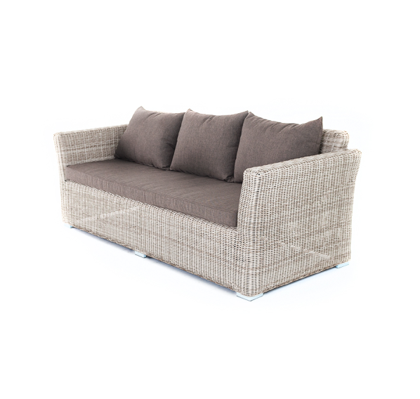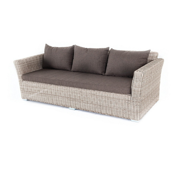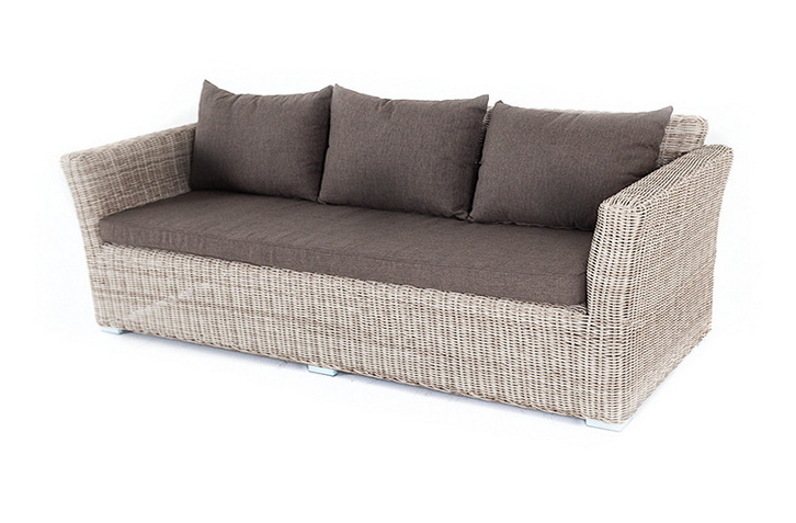 Размеры модели: 2220×865×815 мм, которые позволяют разместить трех человек. Подушки, входящие в комплект, выполнены из высококачественного полиэстера с влагоотталкивающей пропиткой.