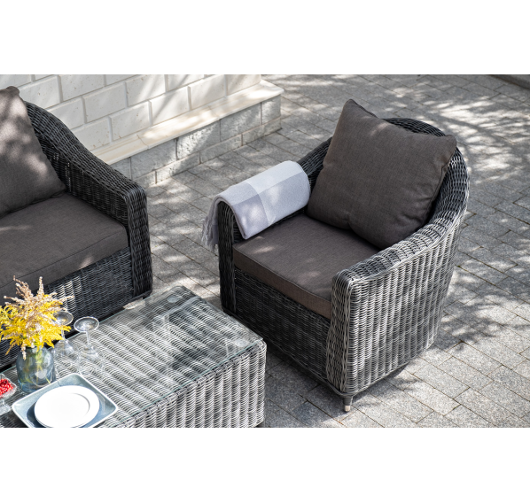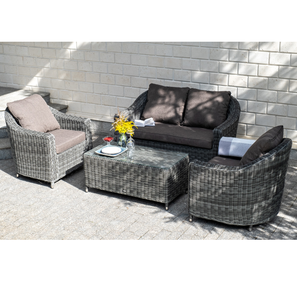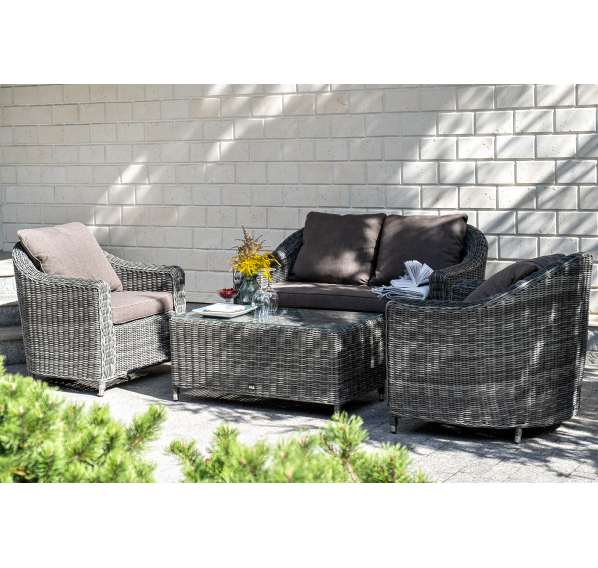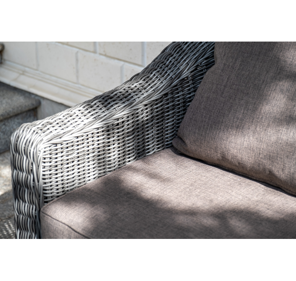 При производстве садового дивана был использован прочный алюминиевый каркас, который вручную оплетен круглым искусственным ротангом.
