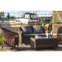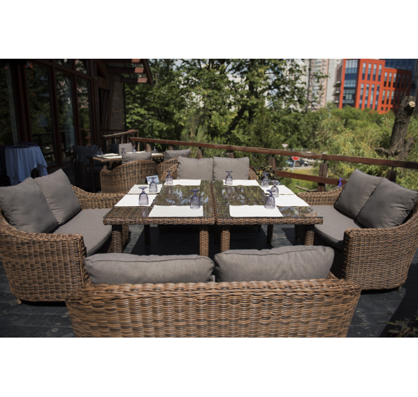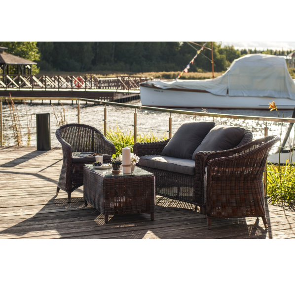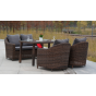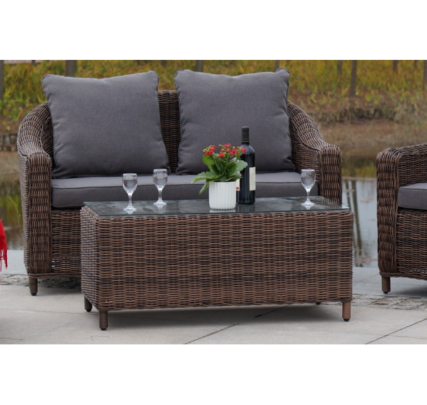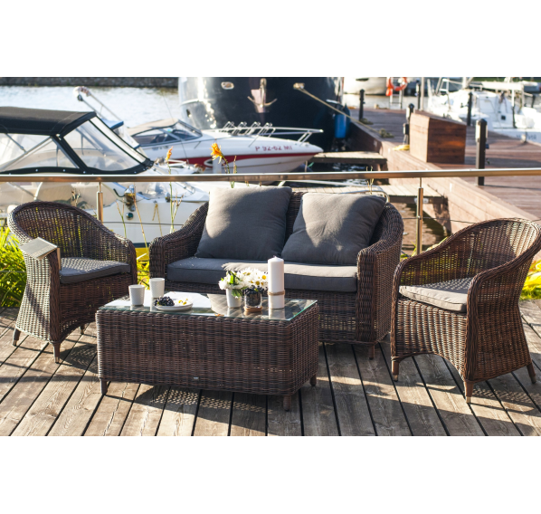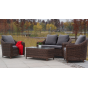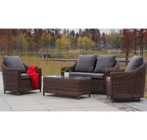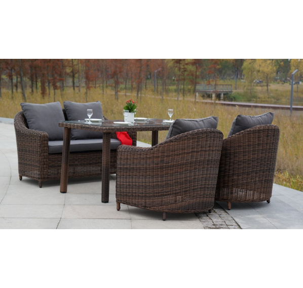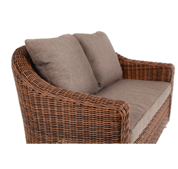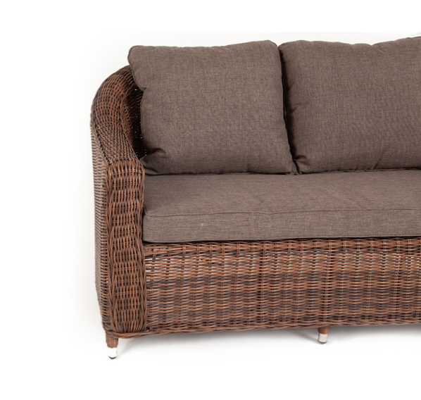 Размер модели – 1370×800×800 мм. Она задекорирована практичной круглой оплеткой, сделанной из искусственного ротанга шоколадного оттенка.