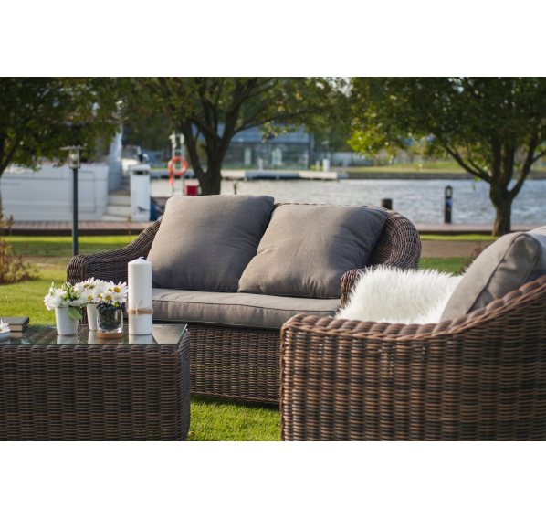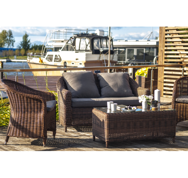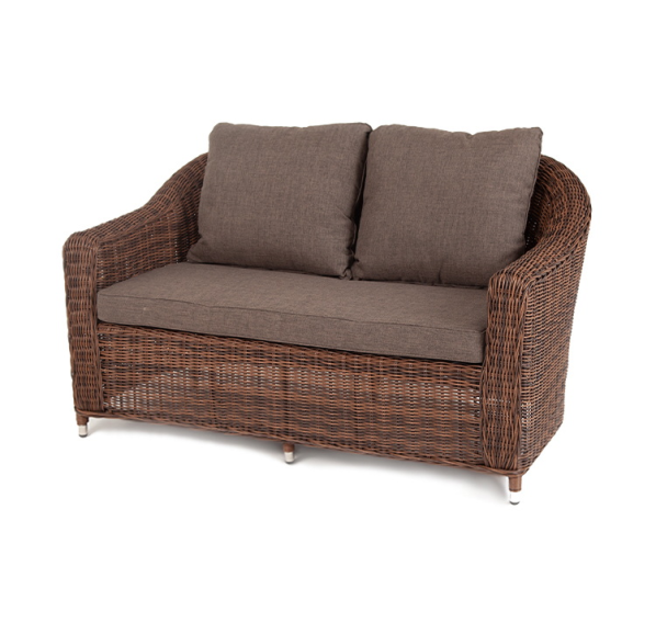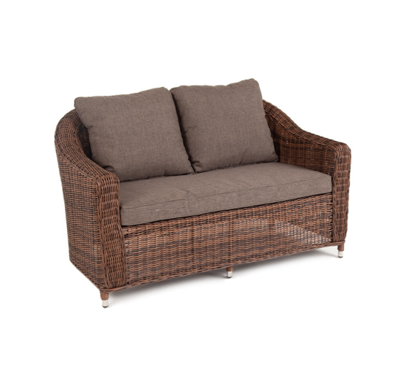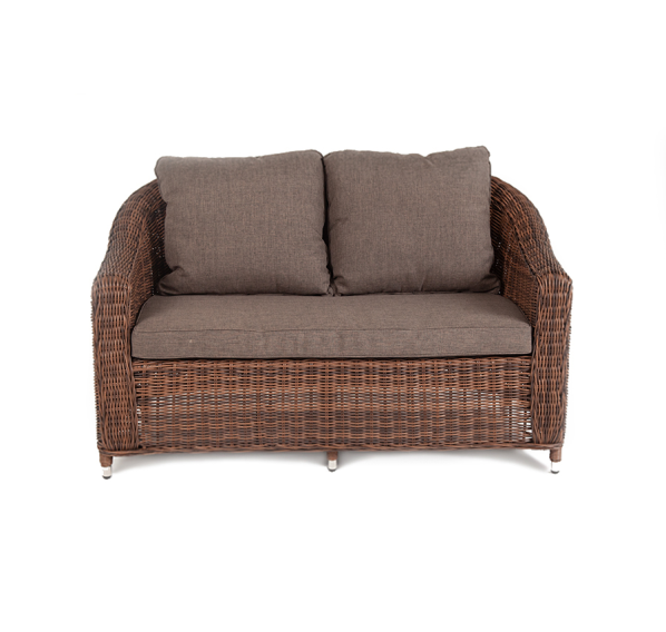 Двухместный диван «Кон Панна» с закругленной спинкой, переходящей в подлокотники. Изготовлен на основе алюминиевого каркаса.