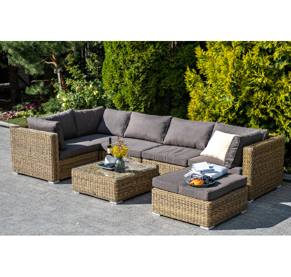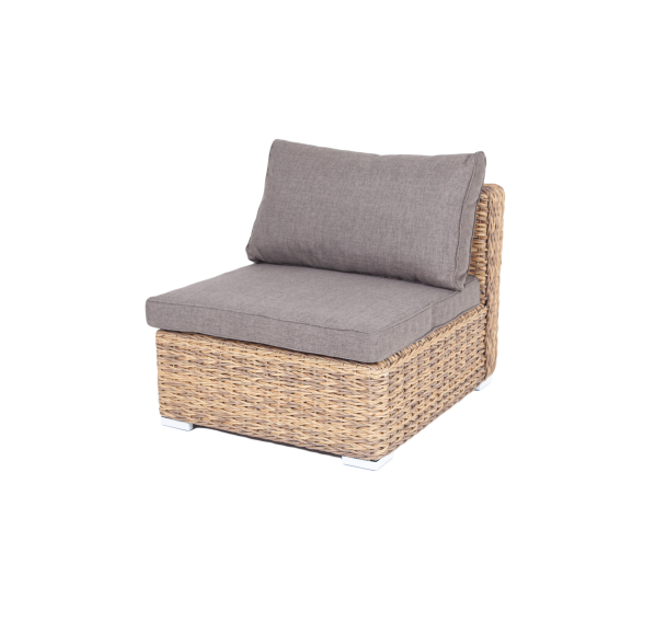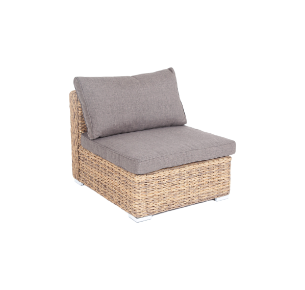 «Лунго» прямой модуль из искусственного ротанга вида «гиацинт», выполнен из алюминиевого каркаса, который оплетен вручную ротангом соломенного цвета.