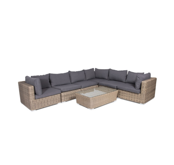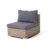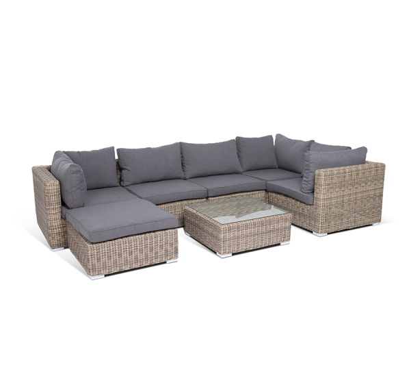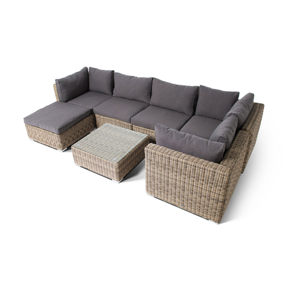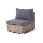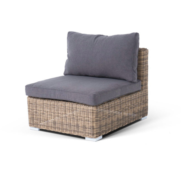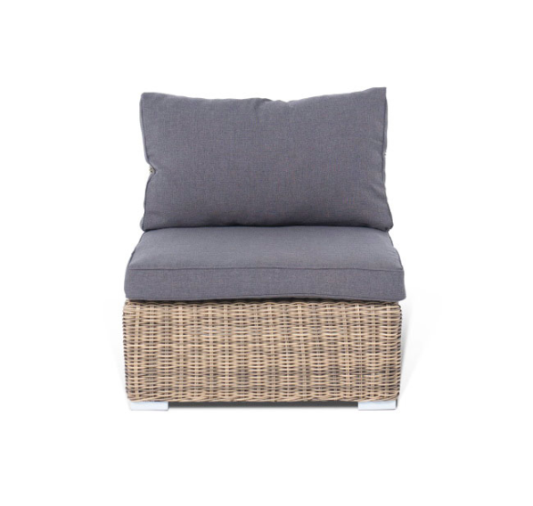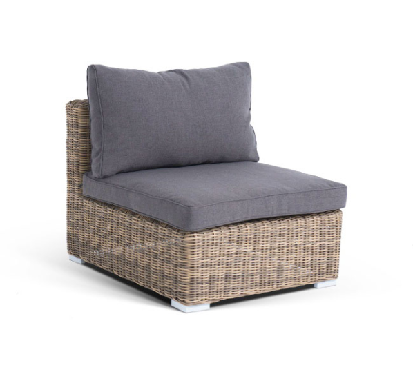 Прямой модуль «Лунго», выполненный из круглого искусственного ротанга натурального соломенного оттенка, позволяет использовать не только как самостоятельный элемент, но и быть частью лаунж-зоны, в которую данная модель превосходно интегрируется.