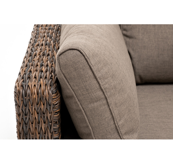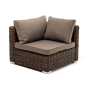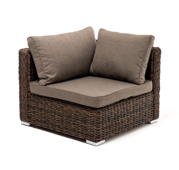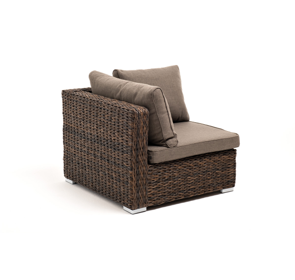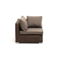 «Лунго» угловой модуль из искусственного ротанга вида «гиацинт», вляется неотъемлемой частью лаунж-зоны. В своем основании имеет каркас из алюминия, который вручную оплетен ротангом коричневого цвета.