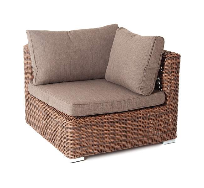 Угловой модуль из круглого искусственного ротанга «Лунго» является одним из звеньев для создания лаунж зоны по индивидуальным потребностям.