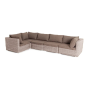 Модульный диван дополняют подушки со съёмными чехлами в сером оттенке. При их пошиве используется полиэстер, плотностью 300гр/м2. Ткань обрабатывается влагоотталкивающей пропиткой для усиления ее защитных качеств.