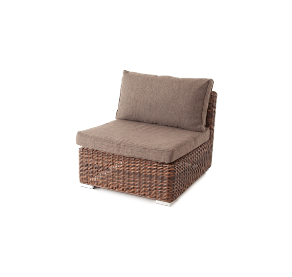 В качестве основы мебели используется алюминиевом каркас высокой прочности. Ее дополняет ручная оплетка, сделанная из круглого искусственного ротанга в коричневом оттенке.