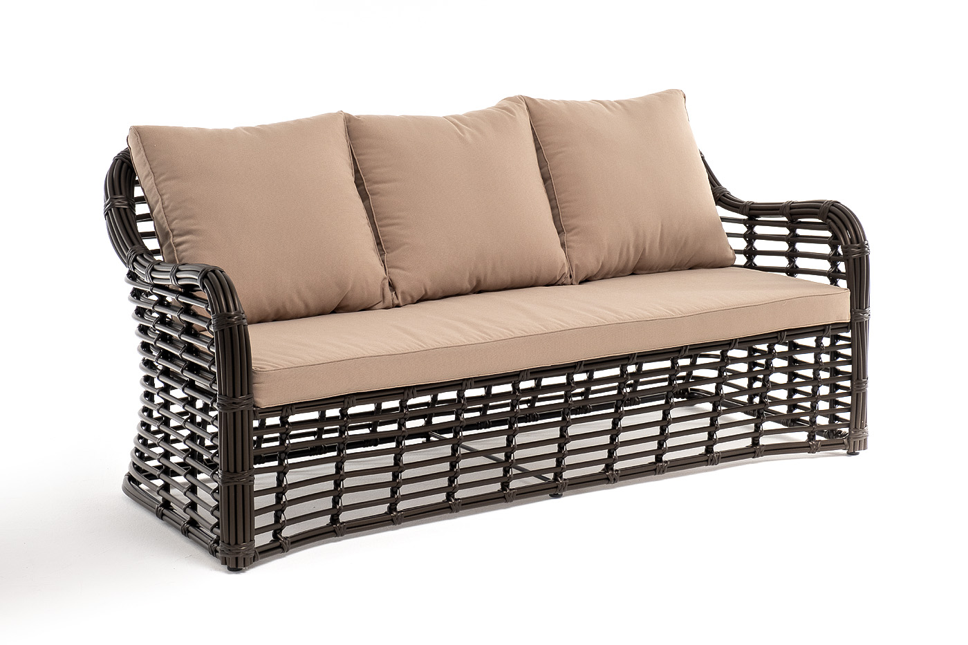 Диван «Ницца» подходит для размещения сразу трех персон. Его основа из прочного алюминиевого каркаса.