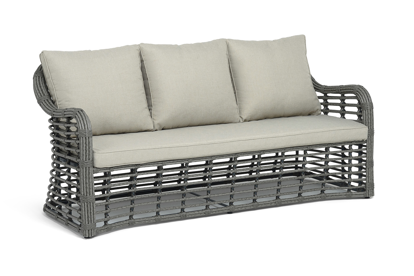 Диван «Ницца» подходит для размещения сразу трех персон. Его основа из прочного алюминиевого каркаса.