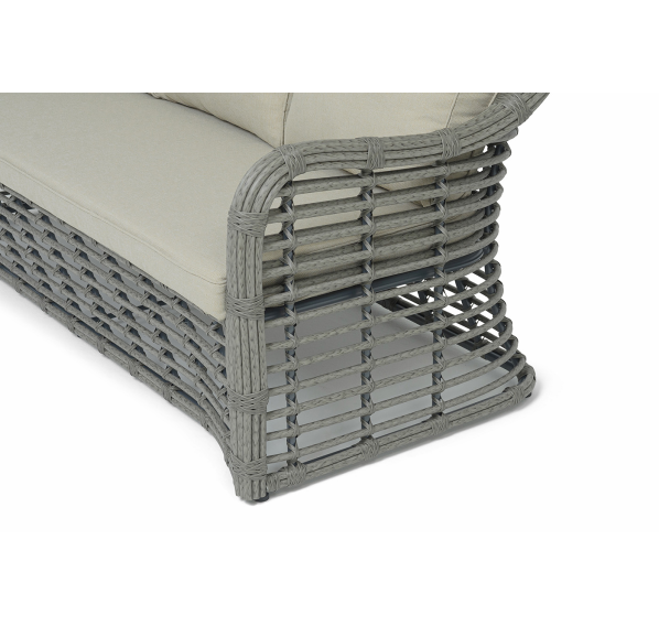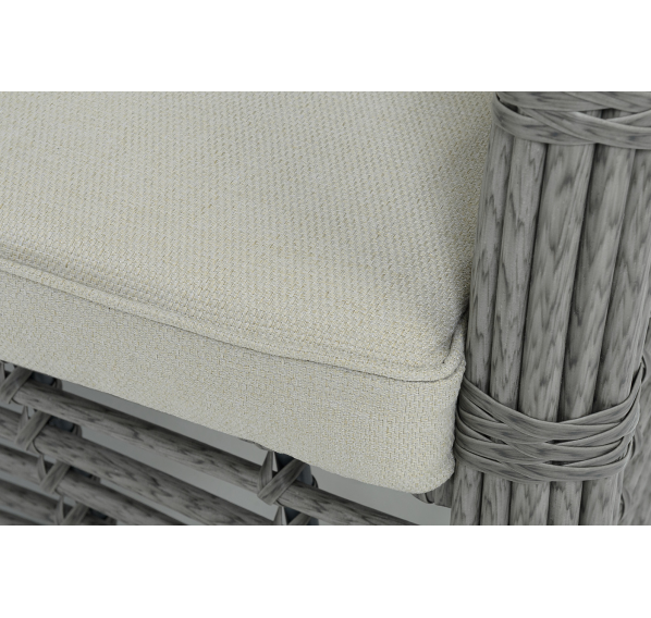 Ручное круглое плетение является основным декоративным элементом мебели. Оно выполнено из искусственного ротанга в сером цвете.