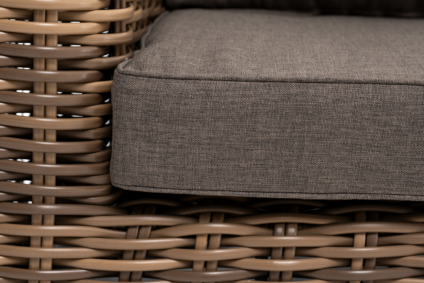 Ручное круглое плетение является основным декоративным элементом мебели. Оно выполнено из искусственного ротанга в соломенном цвете.