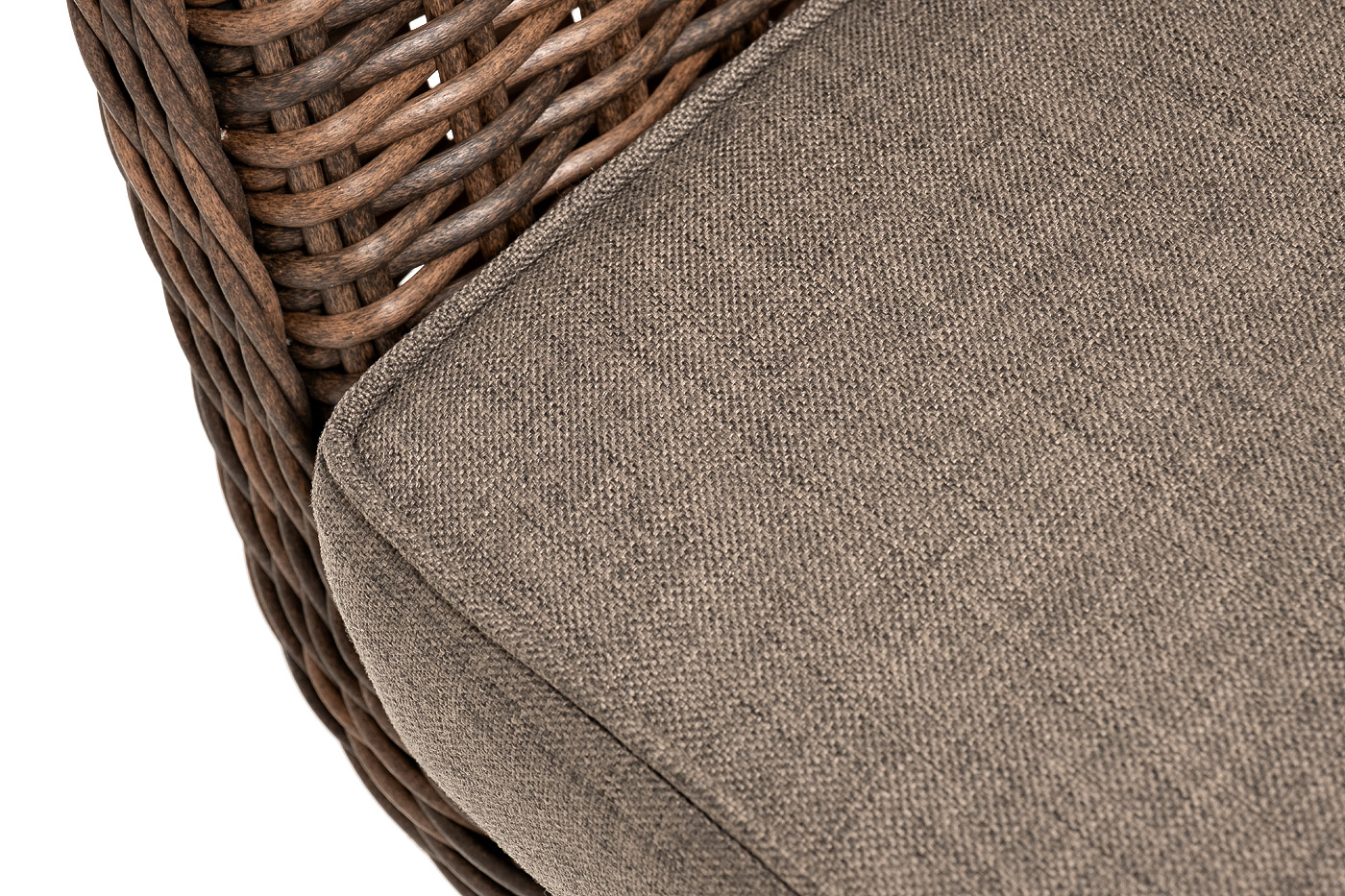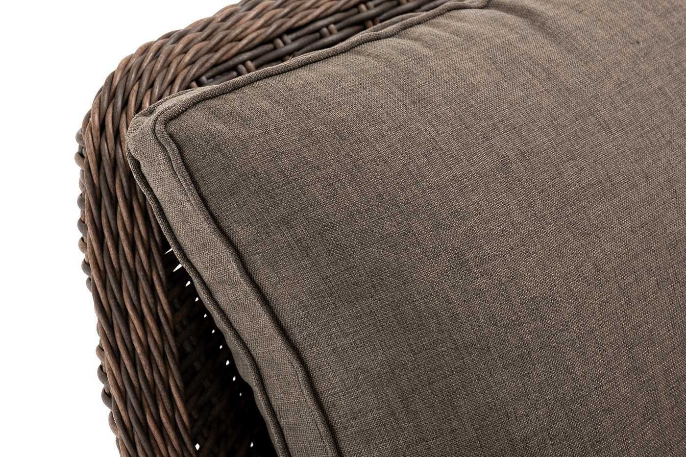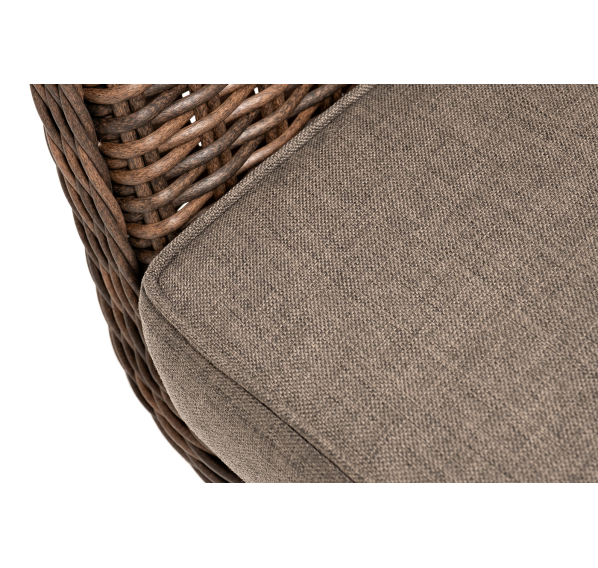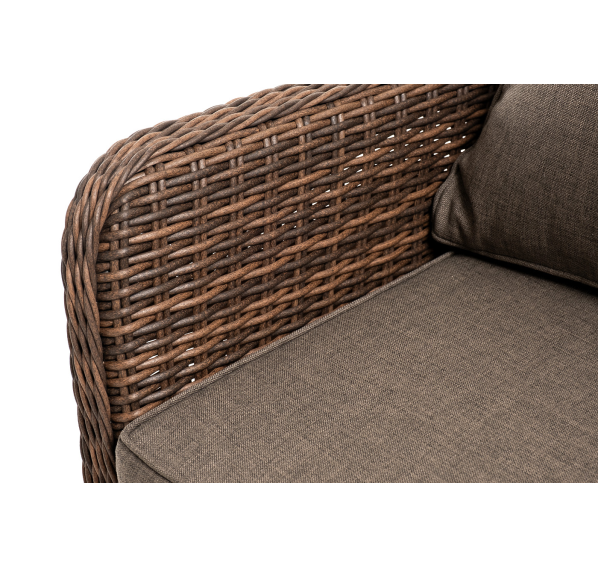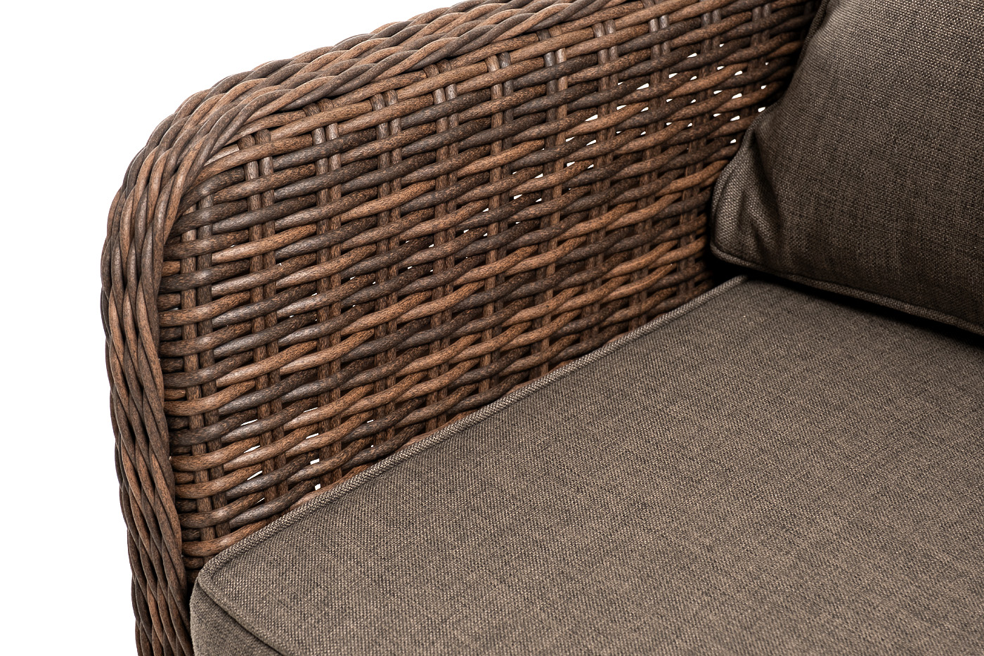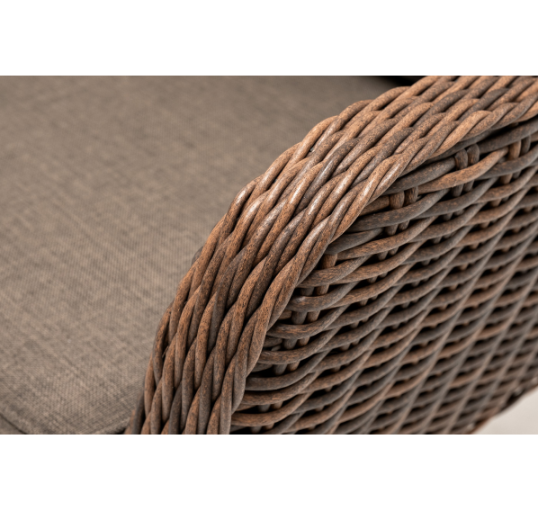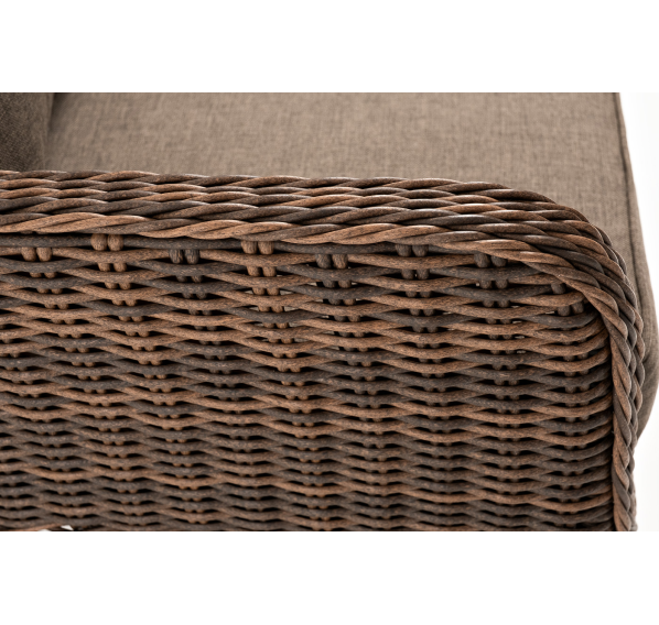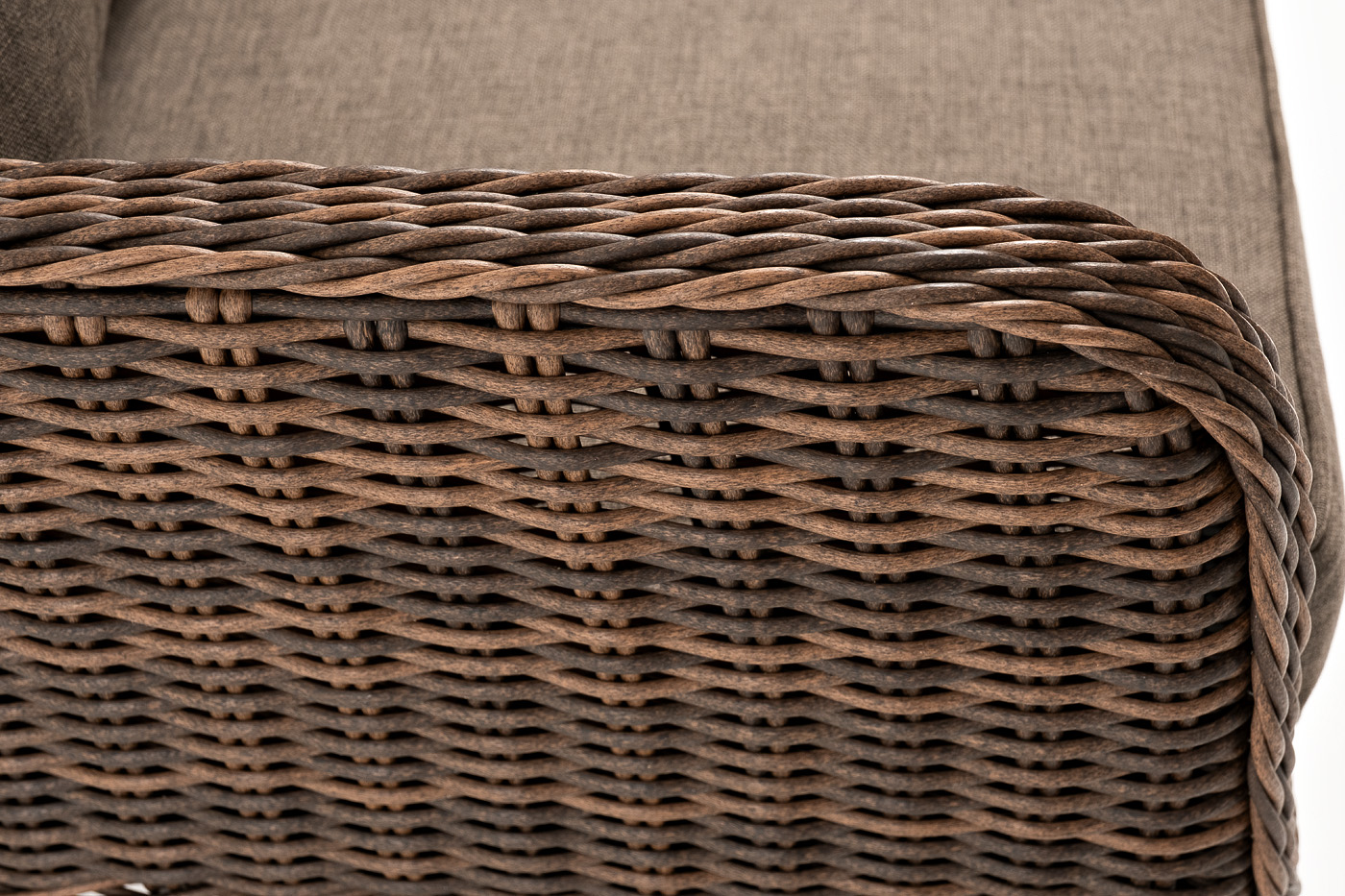 Для оплетки каркаса используется высококачественный искусственный ротанг. Мебель выполнена в коричневом цвете.